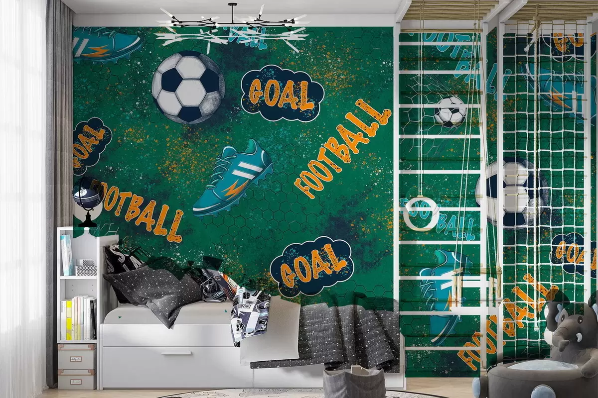 Фотошпалери Дитячий футбольний візерунок у зелених тонах w05037v1