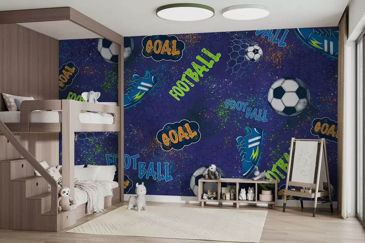 Фотошпалери Дитячий футбольний візерунок у темно-синіх тонах w05037v3