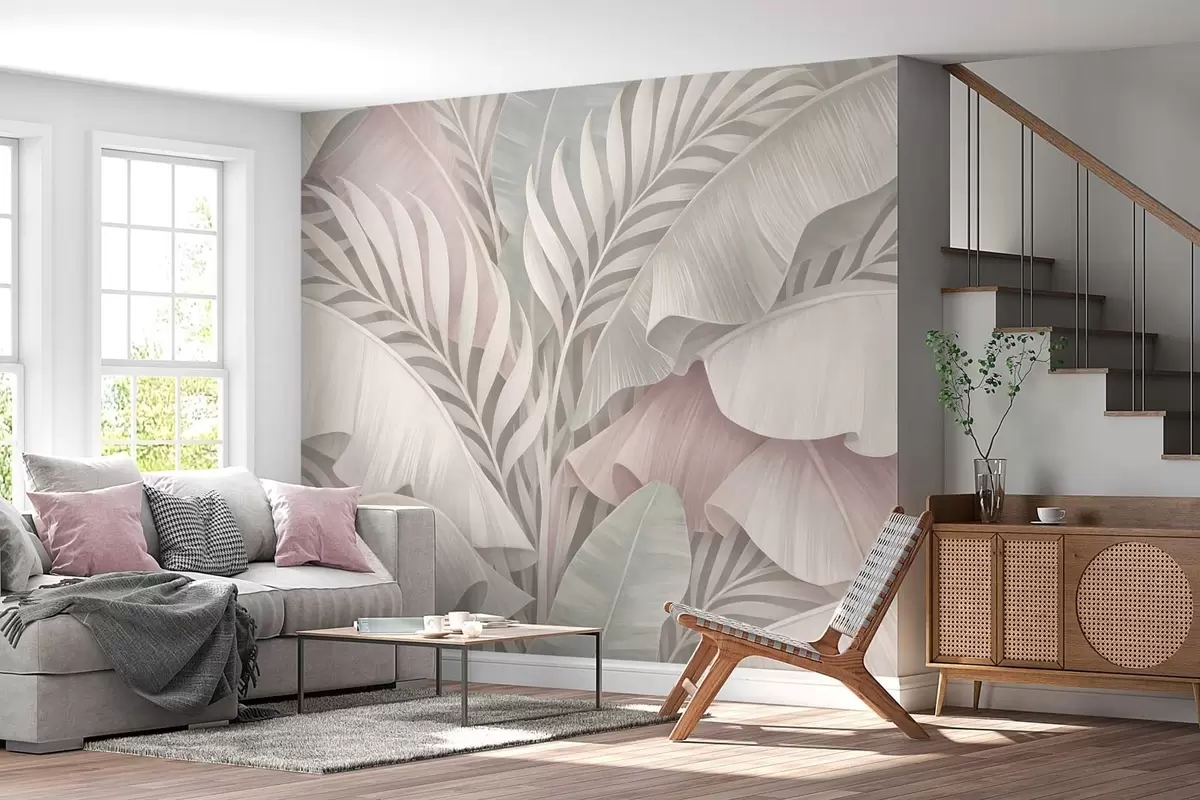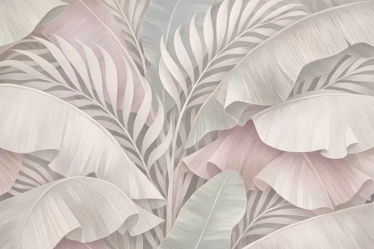 Фотошпалери велике тропічне листя в прохолодних відтінках рожевого та сірого кольорів w05062v1