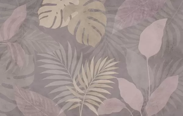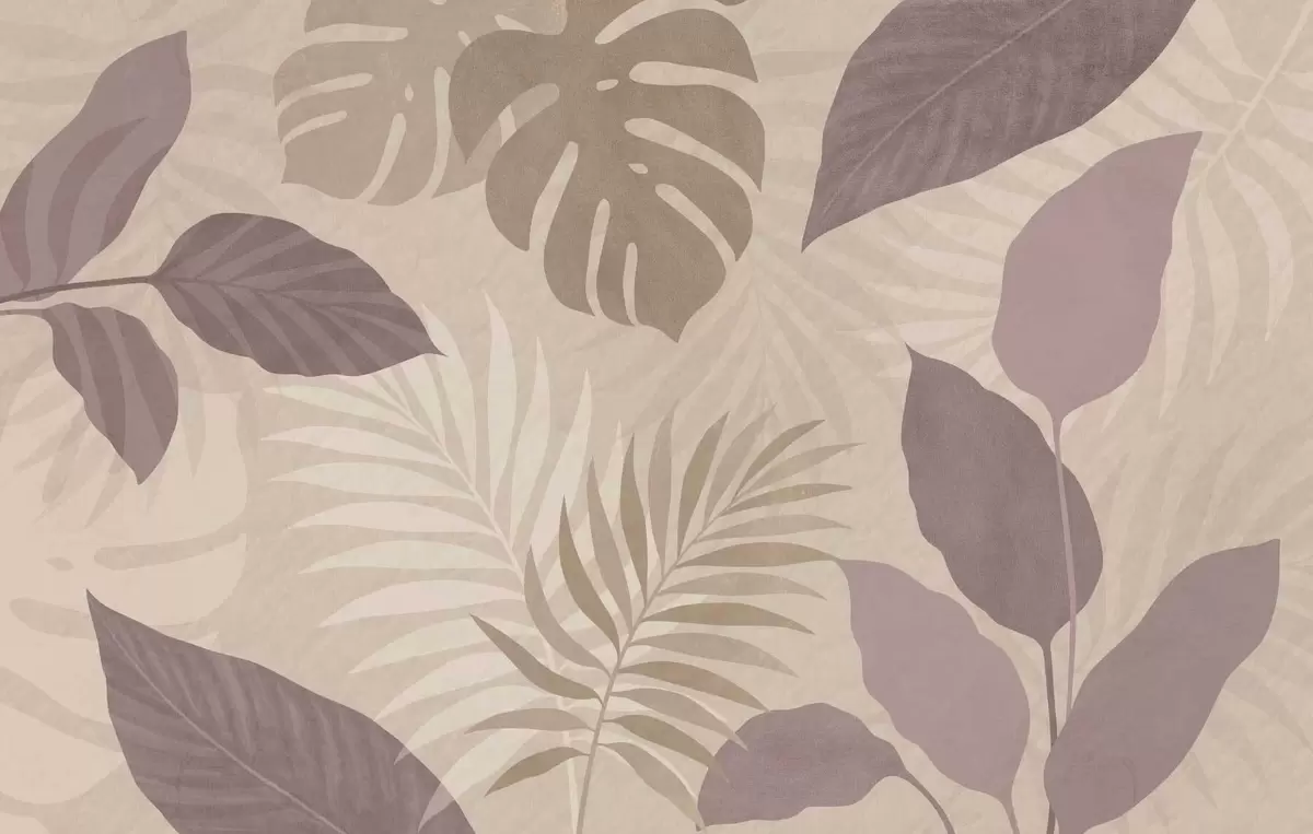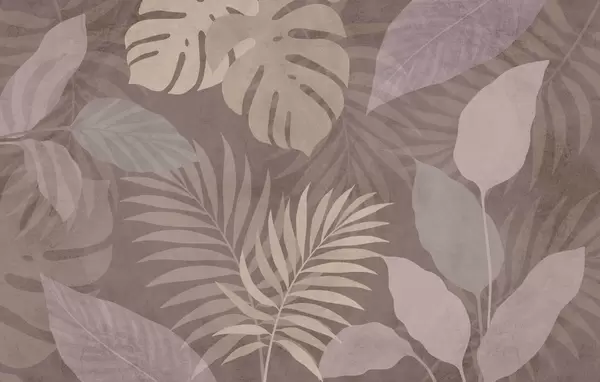Фотошпалери текстуровані тропічні листя на піщаному тлі w05063