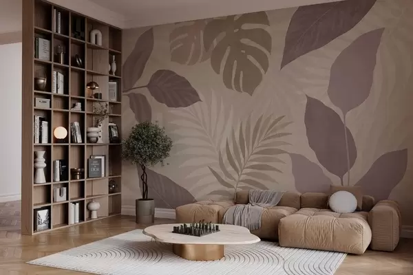 Фотошпалери текстуровані тропічні листя на піщаному тлі w05063