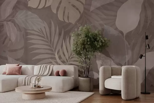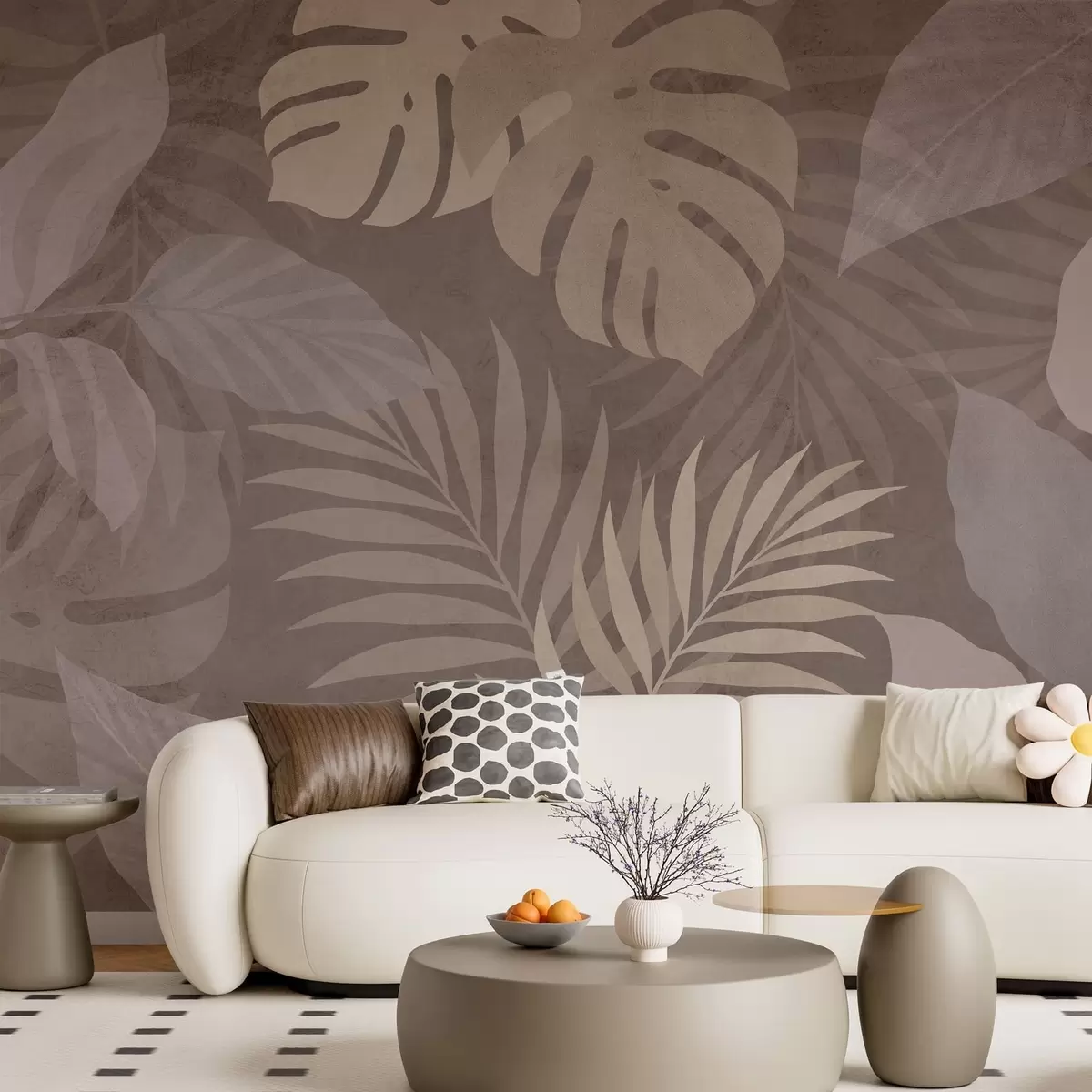 Фотошпалери текстуровані тропічні листя на шоколадному тлі w05063v2