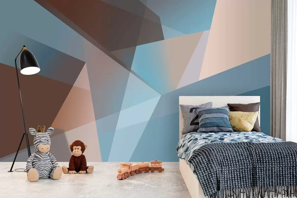 Фотошпалери абстрактна геометрія в синіх і коричневих тонах w05064