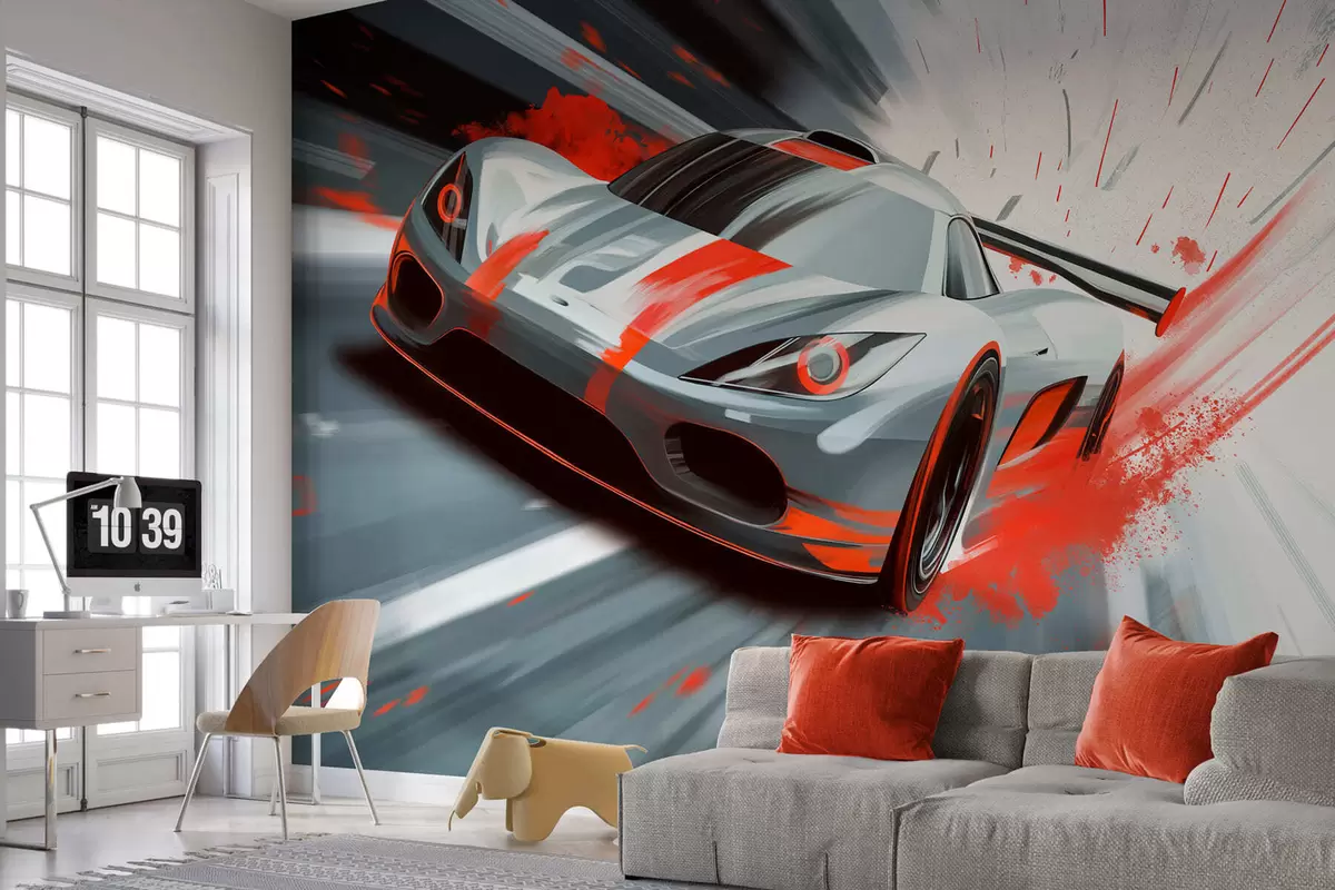 Фотошпалери динамічний спортивний автомобіль у стилі цифрового малюнка з червоними акцентами w05069v1