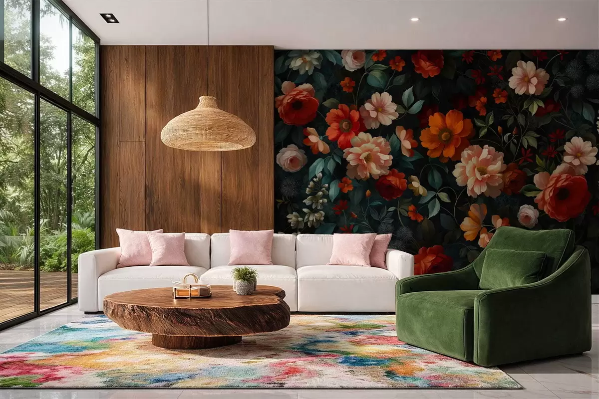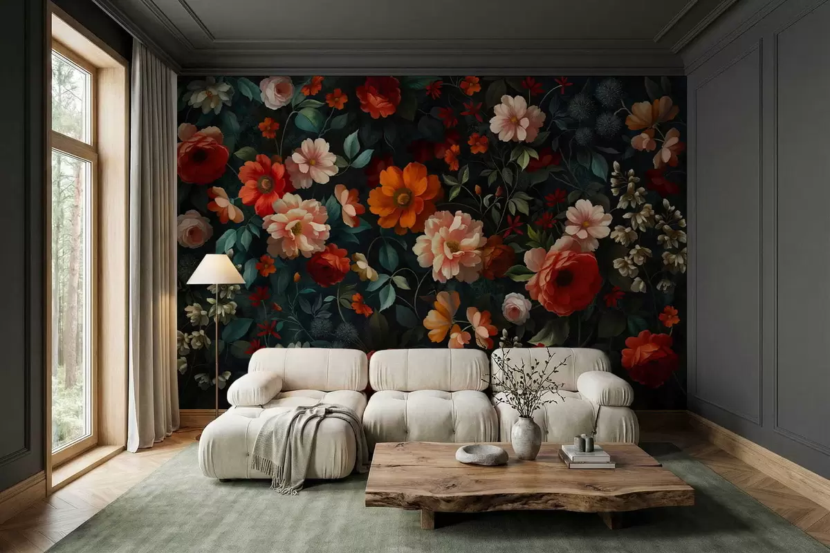 Фотошпалери Темний квітковий візерунок з пишними садовими квітами w05087