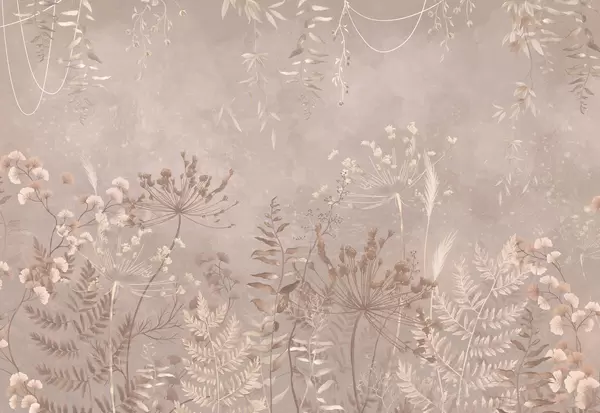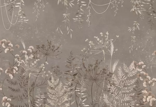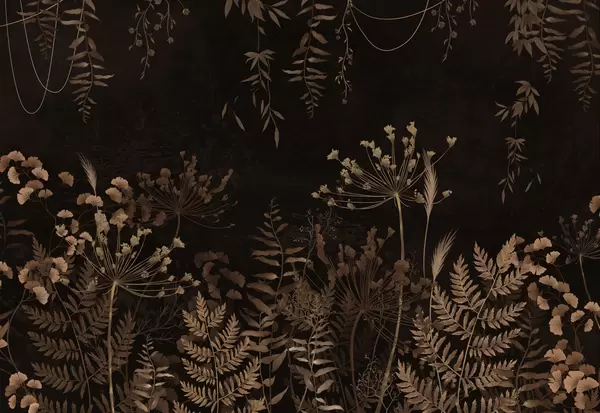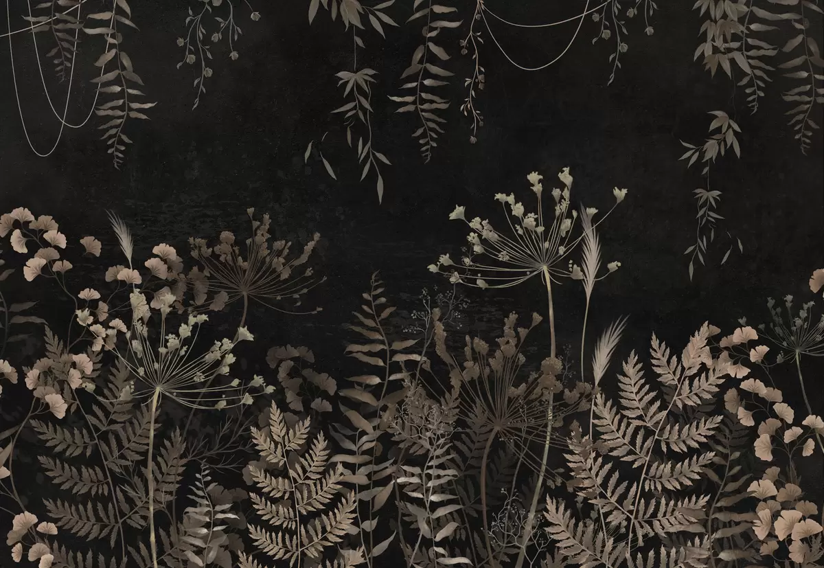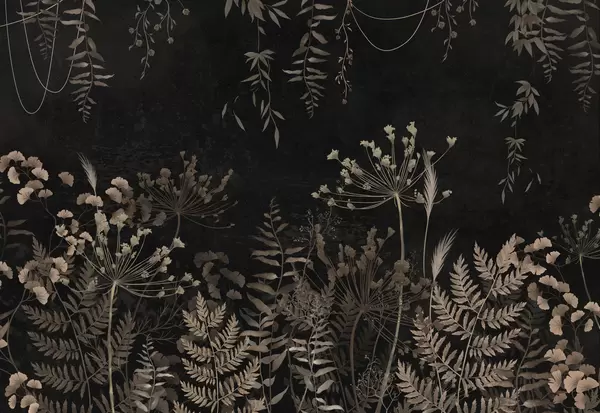 Фотошпалери Темний рослинний візерунок з квітами та листям w05092
