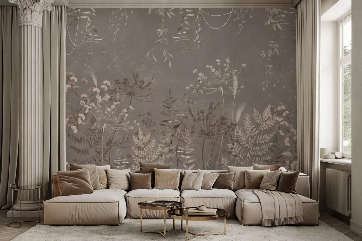 Фотошпалери Легкий рослинний візерунок з квітами та листям w05092v1