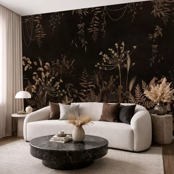 Фотошпалери Темний рослинний візерунок з квітами та травами w05092v3