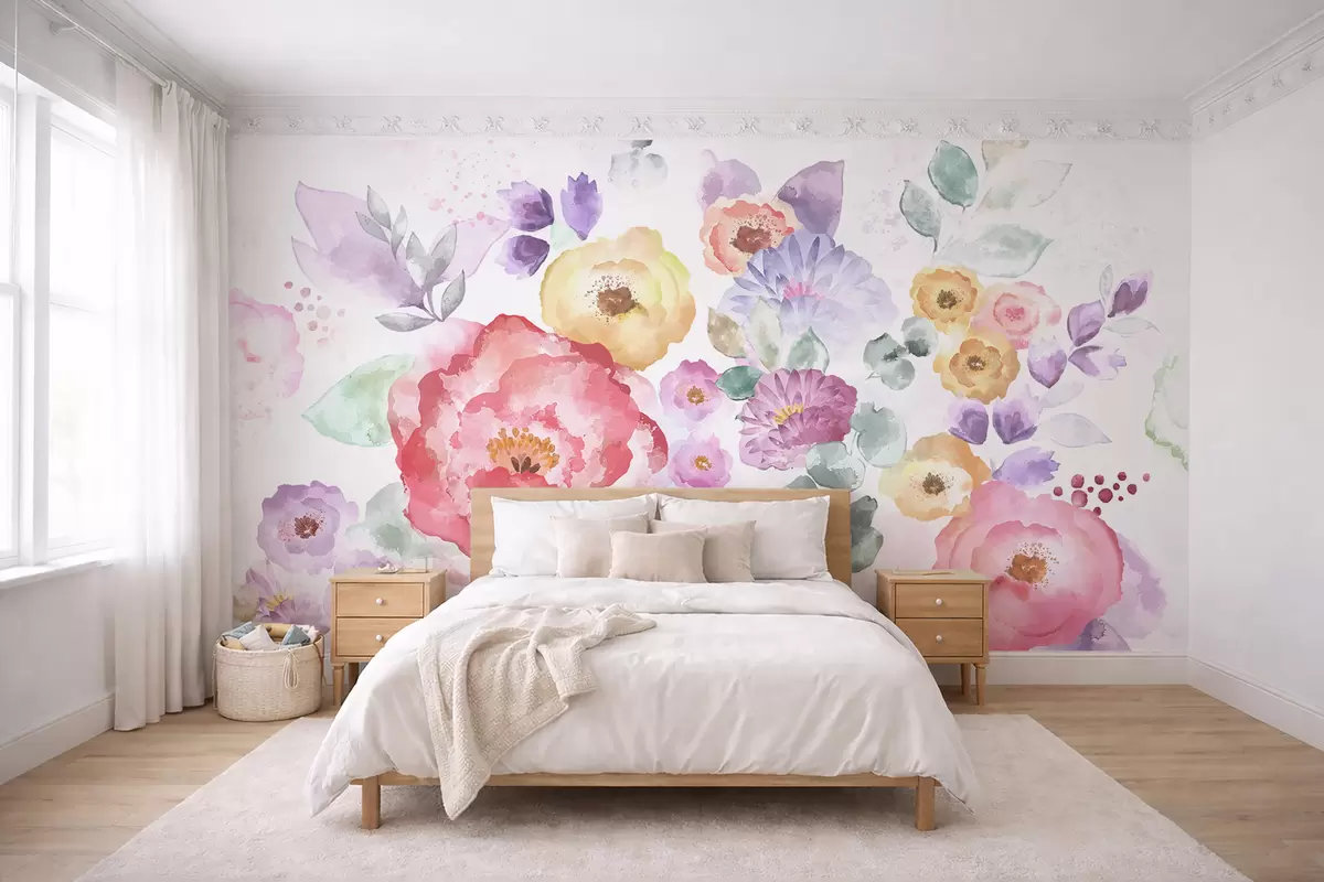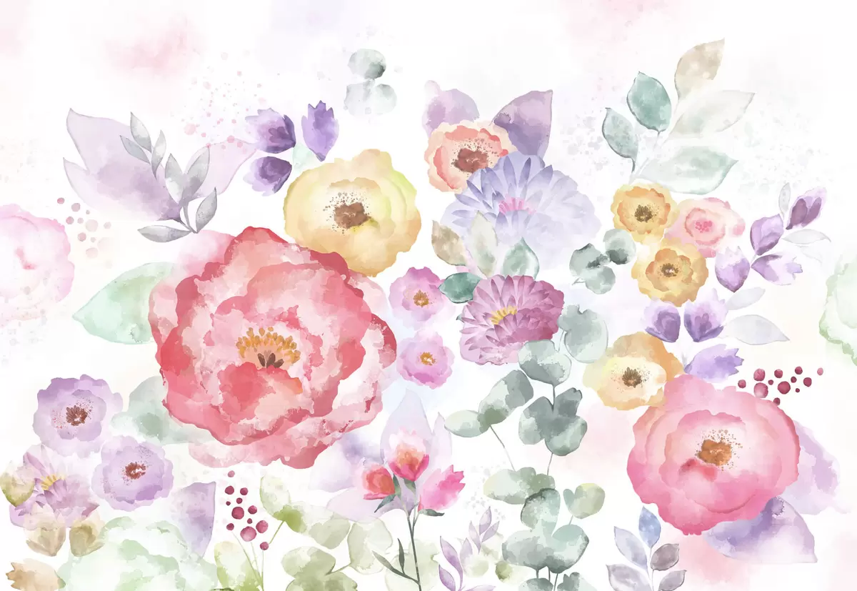 Фотошпалери Пастельні акварельні квіти на світлому тлі w05093v1