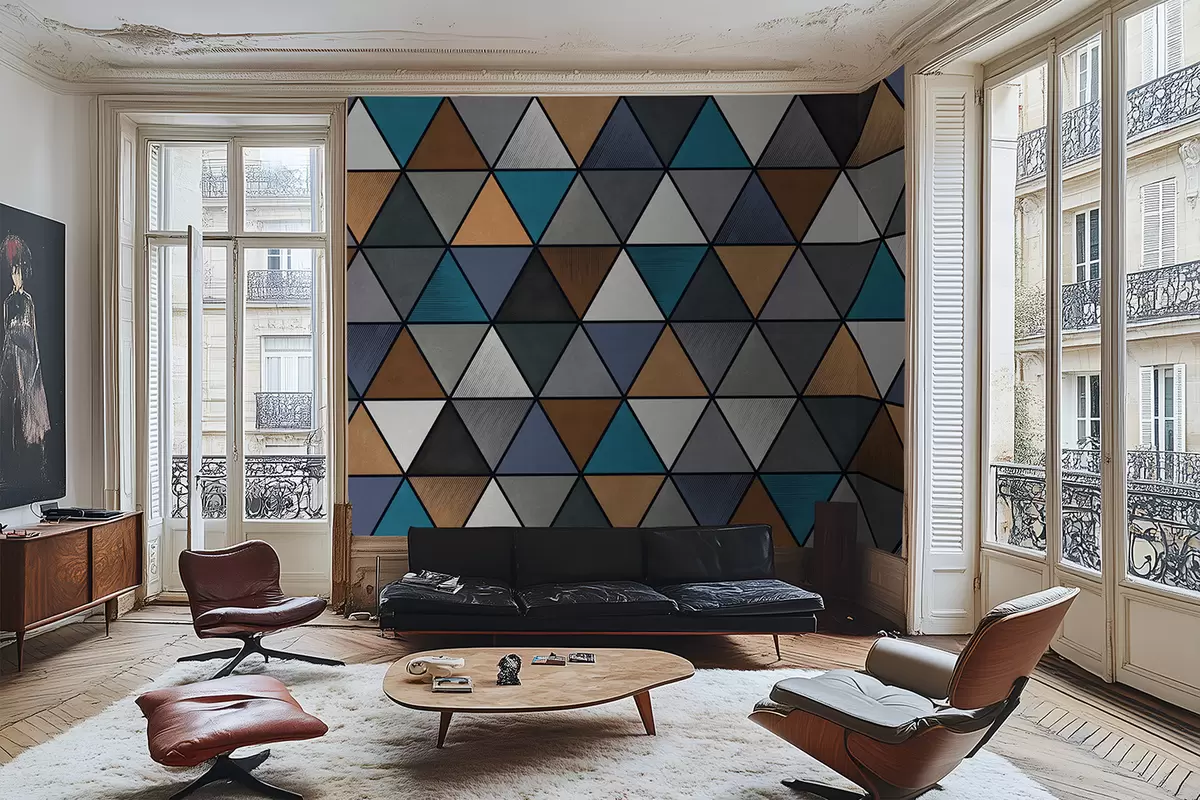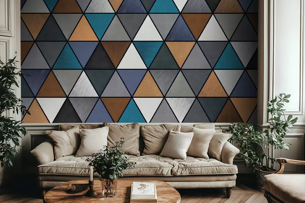 Фотошпалери Трикутний геометричний візерунок у синіх і теплих тонах w05095