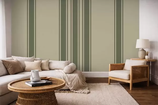 Фотошпалери Вертикальні смуги в приглушеній зеленій і бежевій палітрі w05098