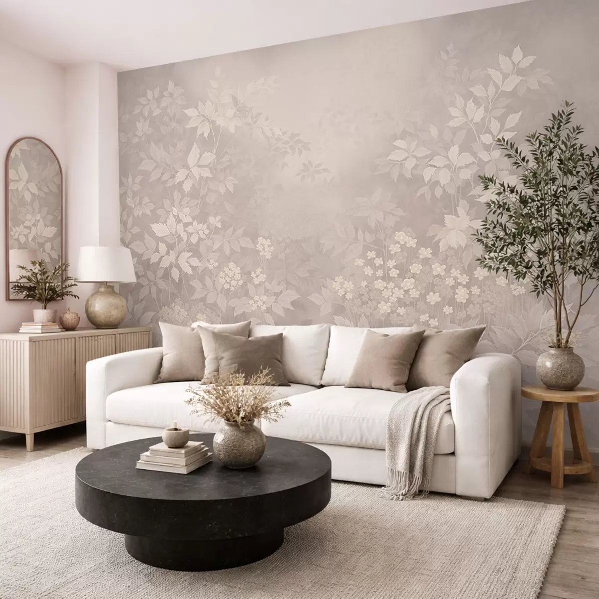 Фотошпалери Легкий рослинний орнамент з листям і дрібними квітами w05115