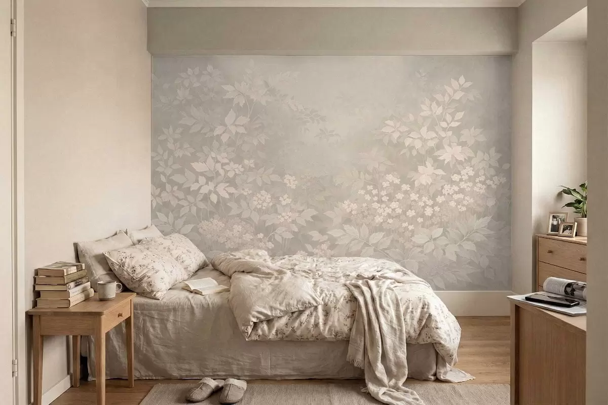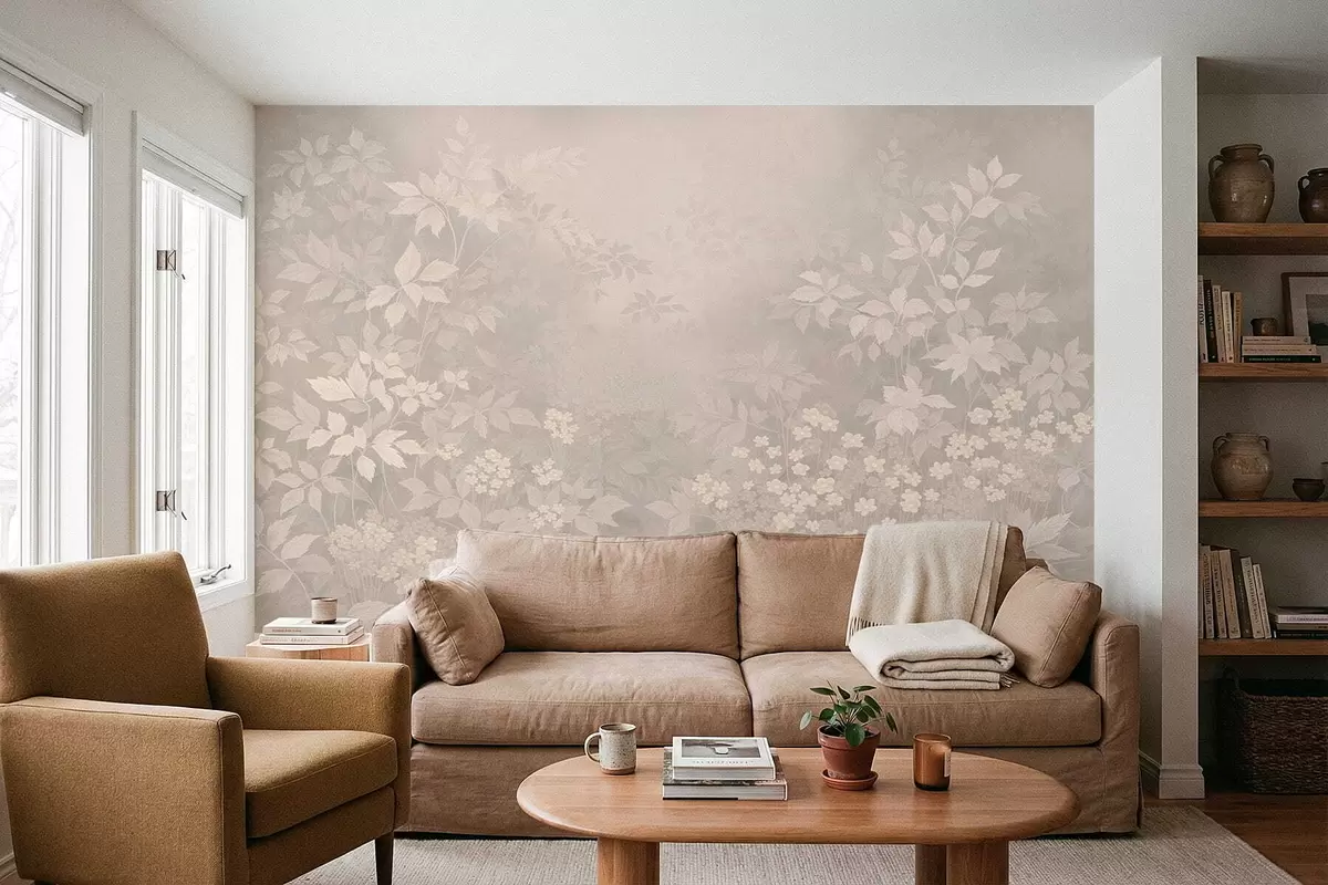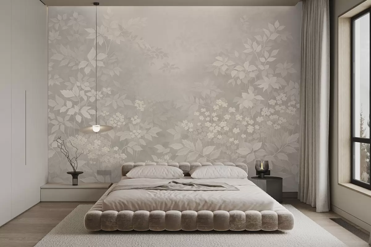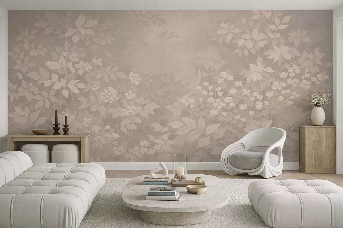 Фотошпалери М'який рослинний візерунок з листям і квітами в тумані w05115v1
