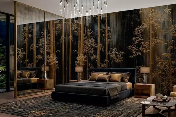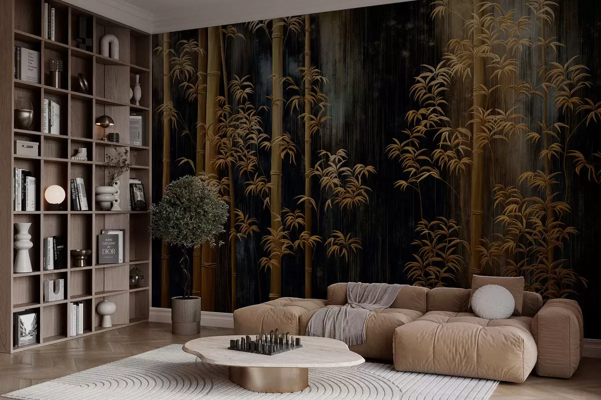 Фотошпалери Темний бамбук на чорному тлі w05120