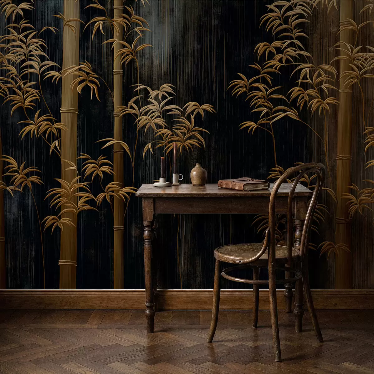 Фотошпалери Темний бамбук на чорному тлі w05120