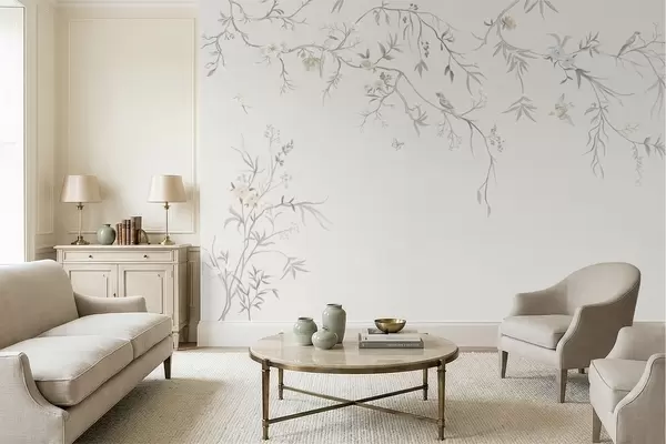 Фотошпалери Ніжні квіти та птахи на крейдяному тлі w05127