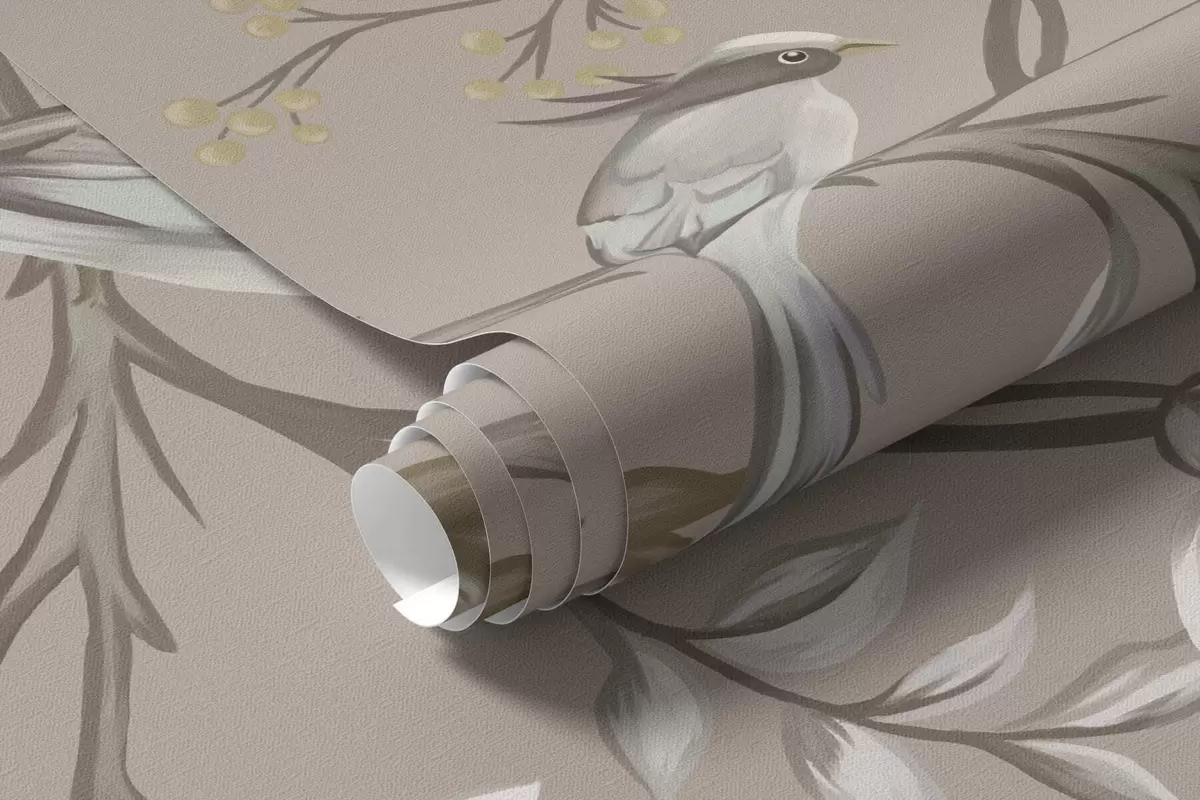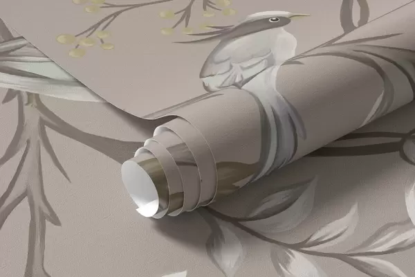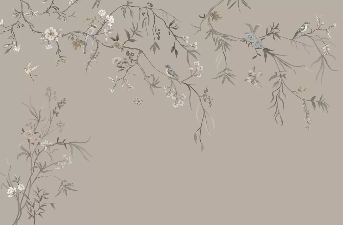Фотошпалери Квітковий орнамент з птахами на нейтральному тлі w05127v3