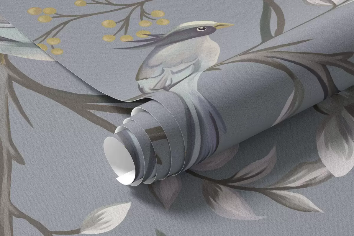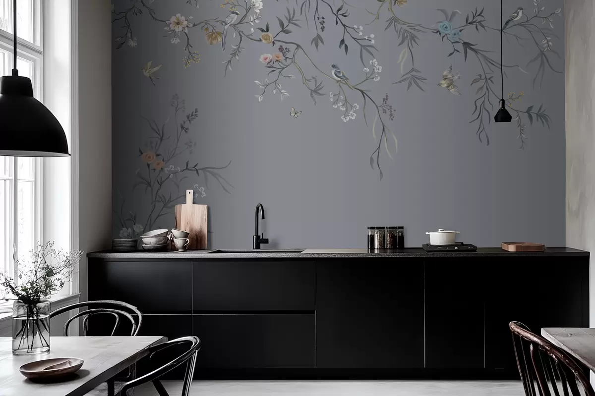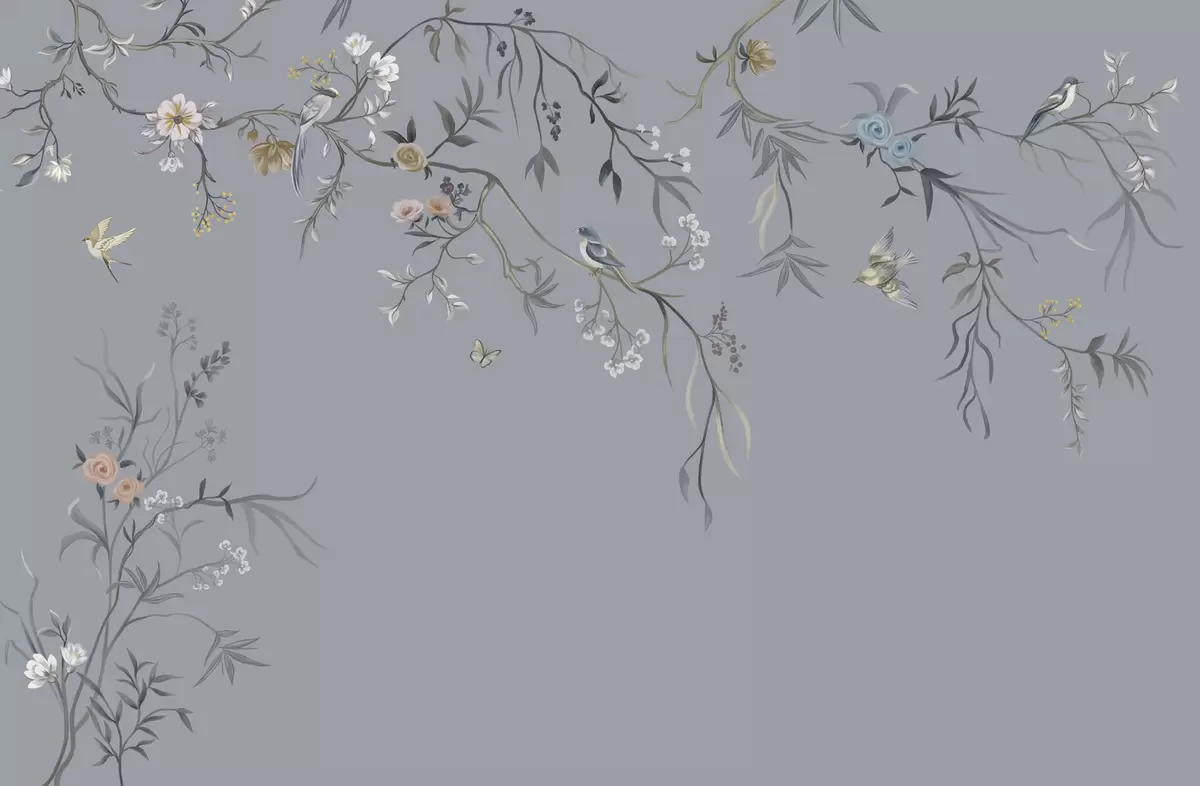 Фотошпалери Квіткові гілки з птахами на зеленому тлі w05127v5