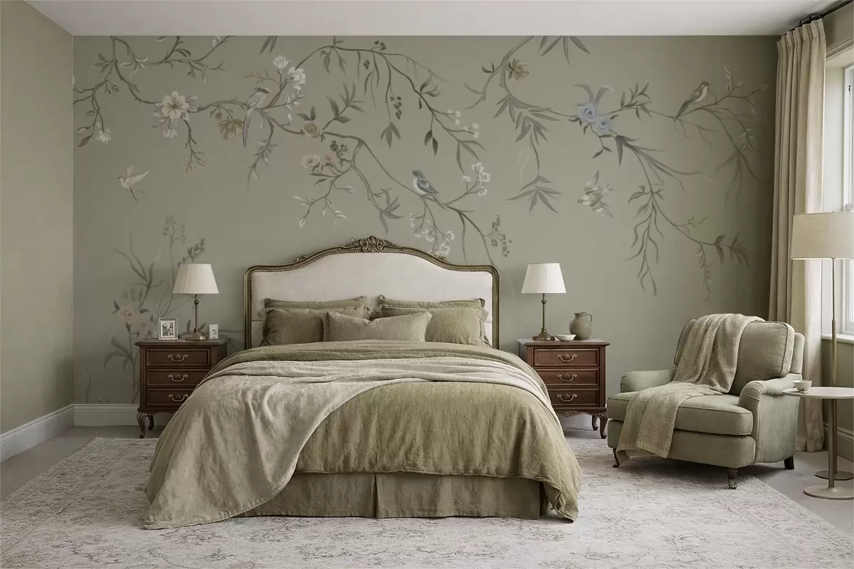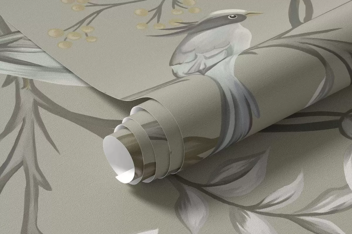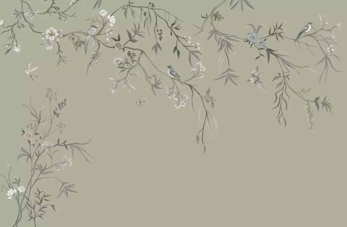 Фотошпалери Квітковий візерунок з птахами на прохолодному тлі w05127v6