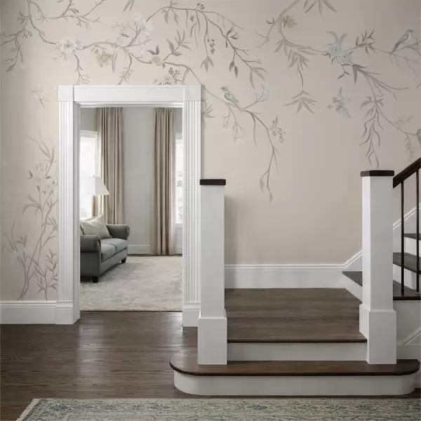 Фотошпалери Квіткові гілки з птахами на світлому тлі w05127v7