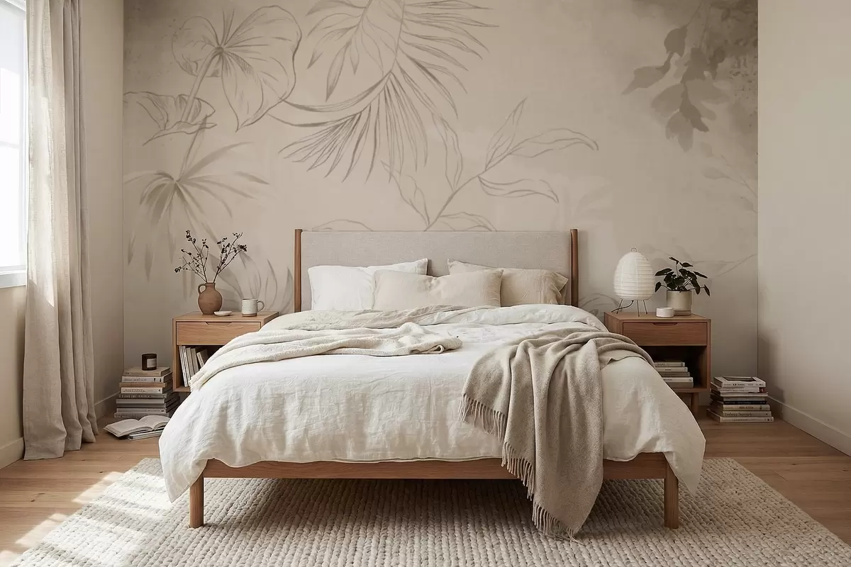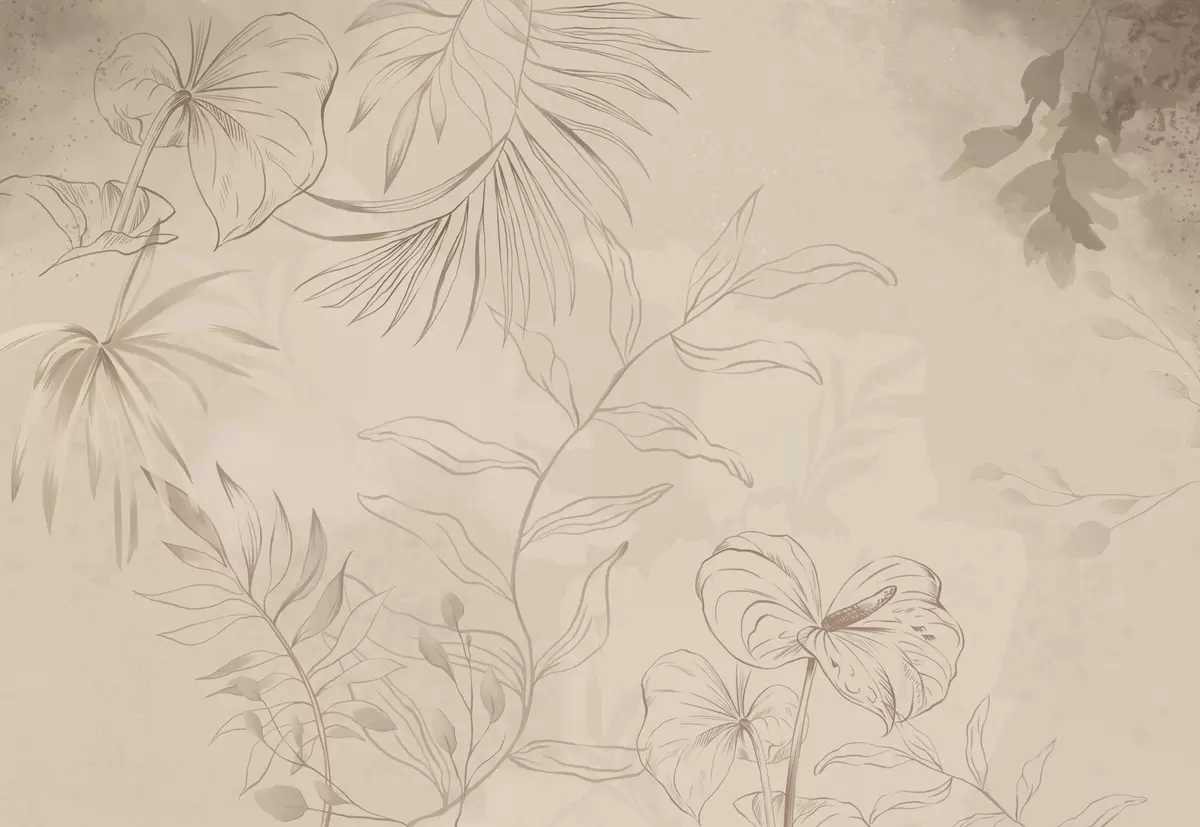Фотошпалери Лінійні рослини на фактурному бежевому тлі w05128