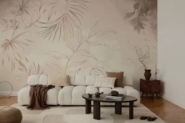 Фотошпалери Лінійні рослини на фактурному бежевому тлі w05128