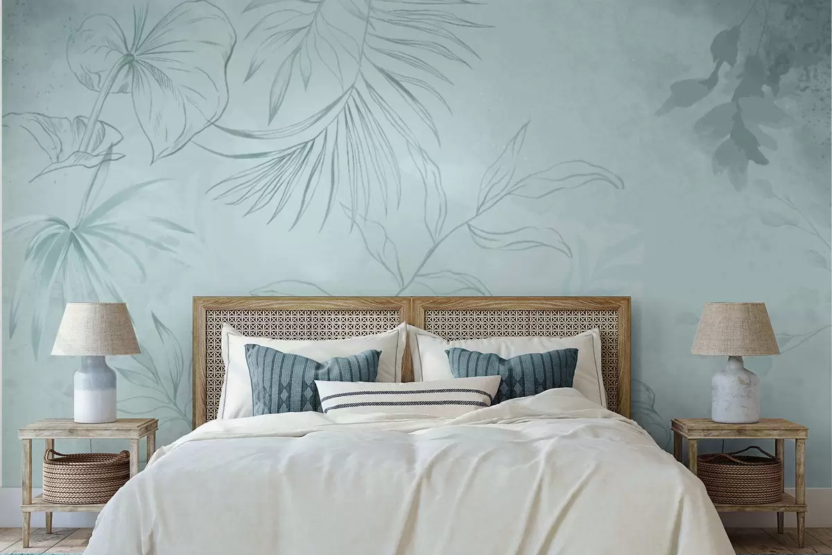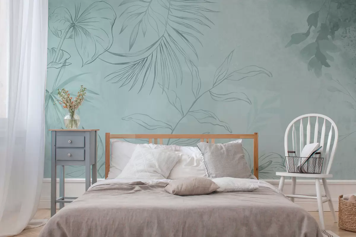 Фотошпалери Лінійні рослини на м'якому зеленуватому тлі w05128v1