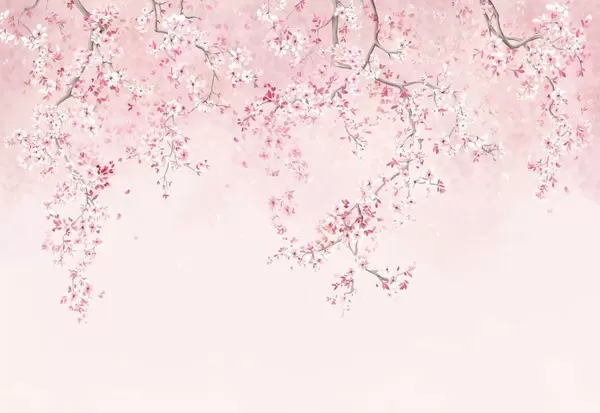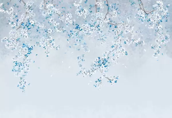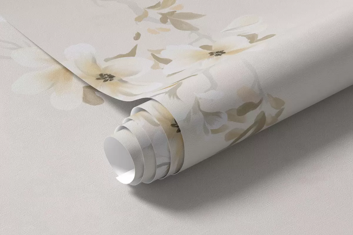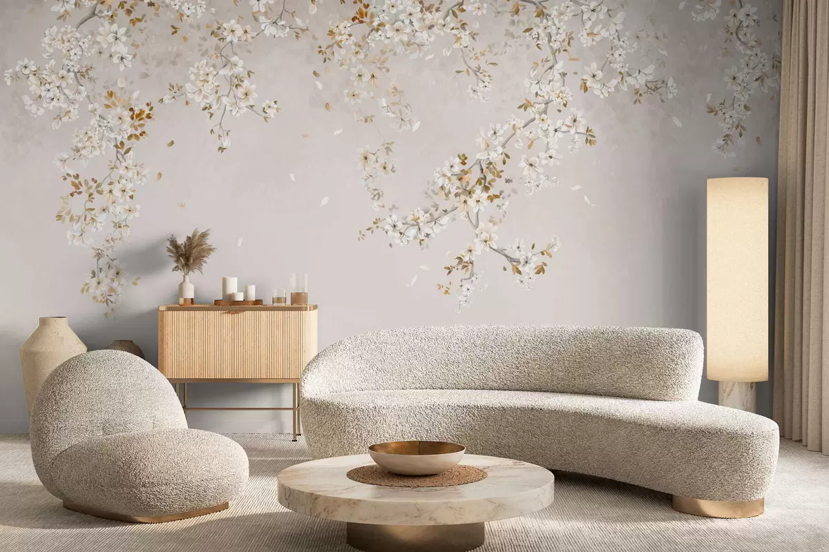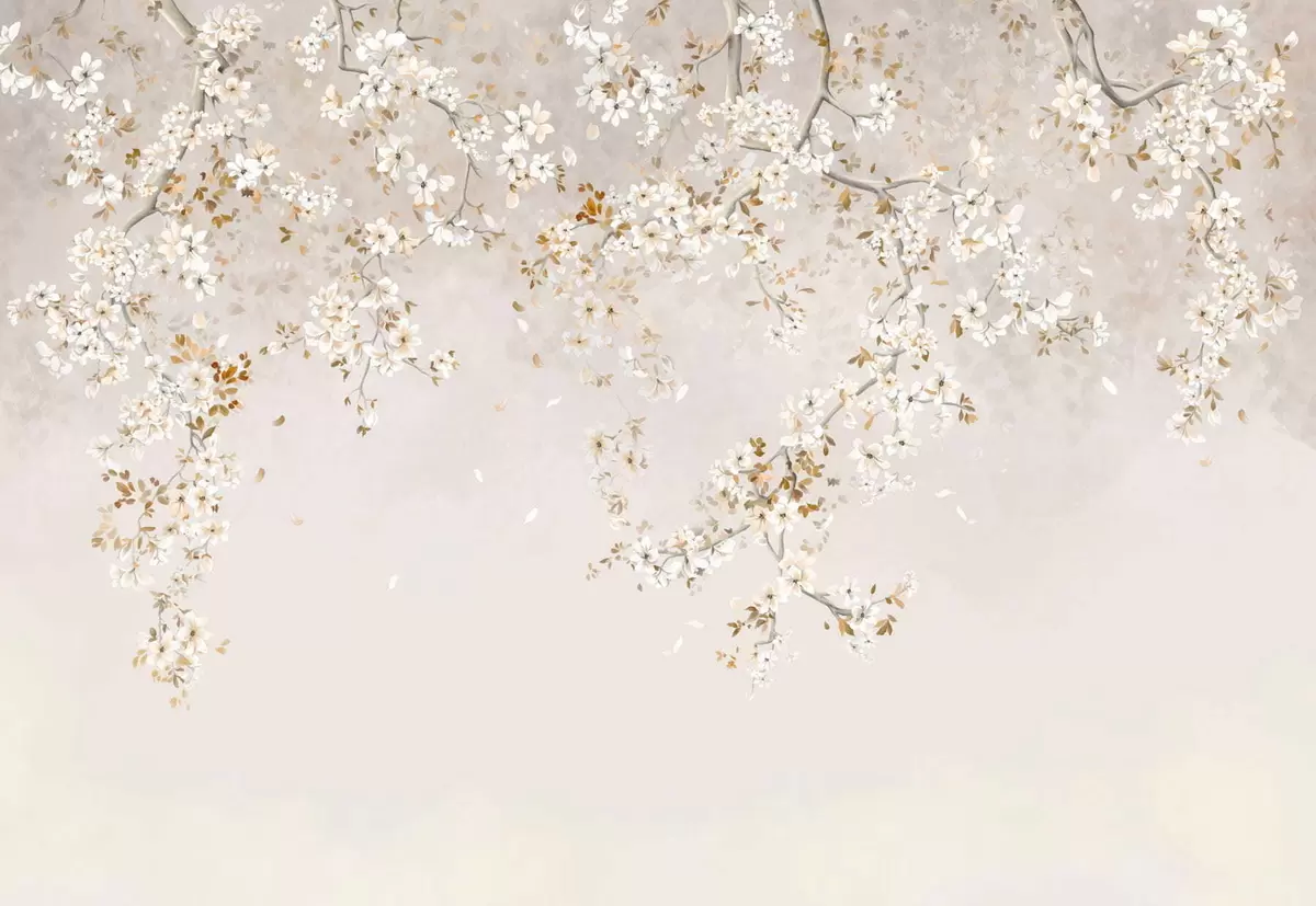 Фотошпалери Гілки з білими квітами на м'якому бежевому тлі w05129