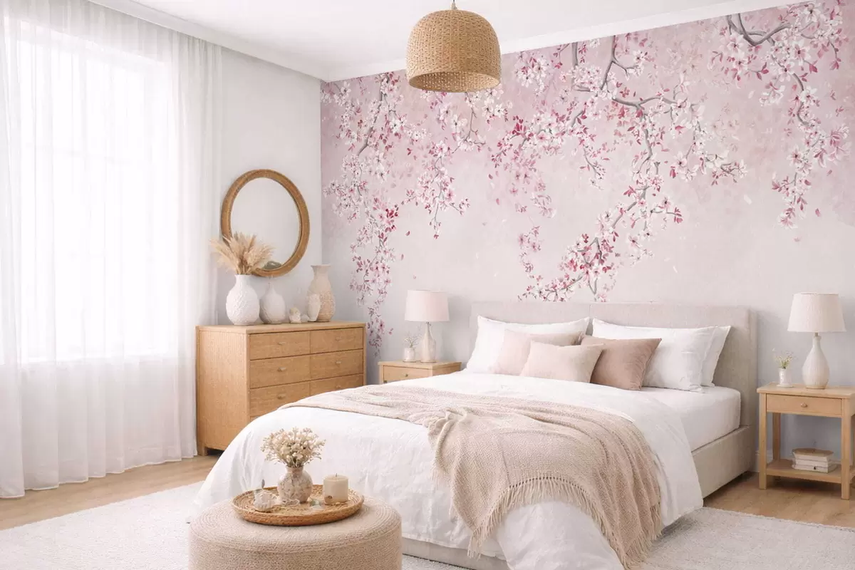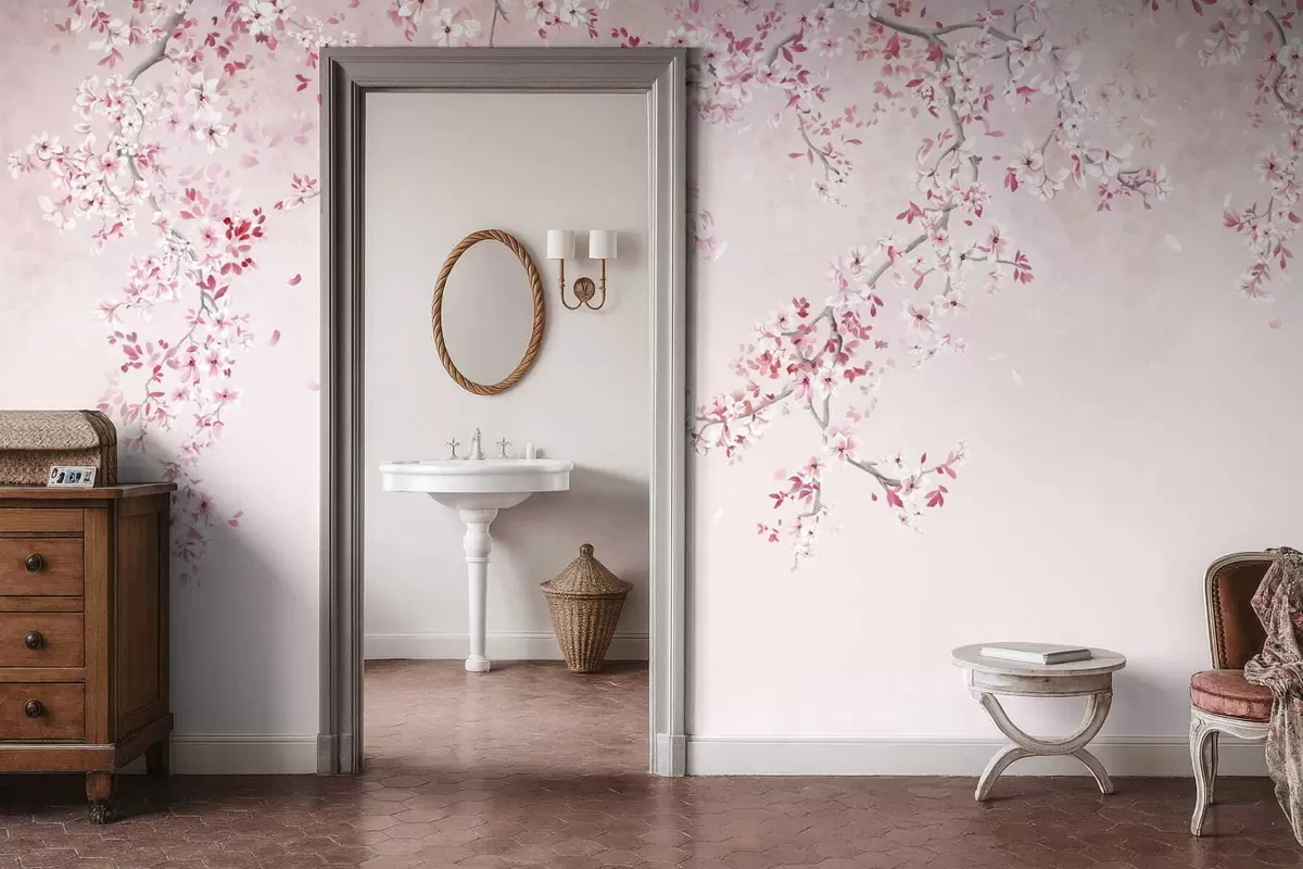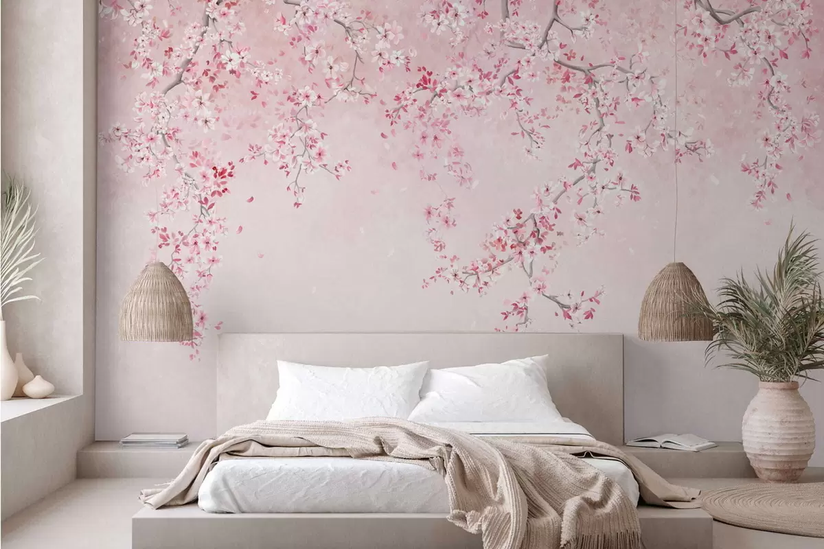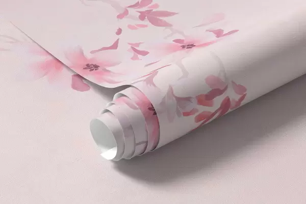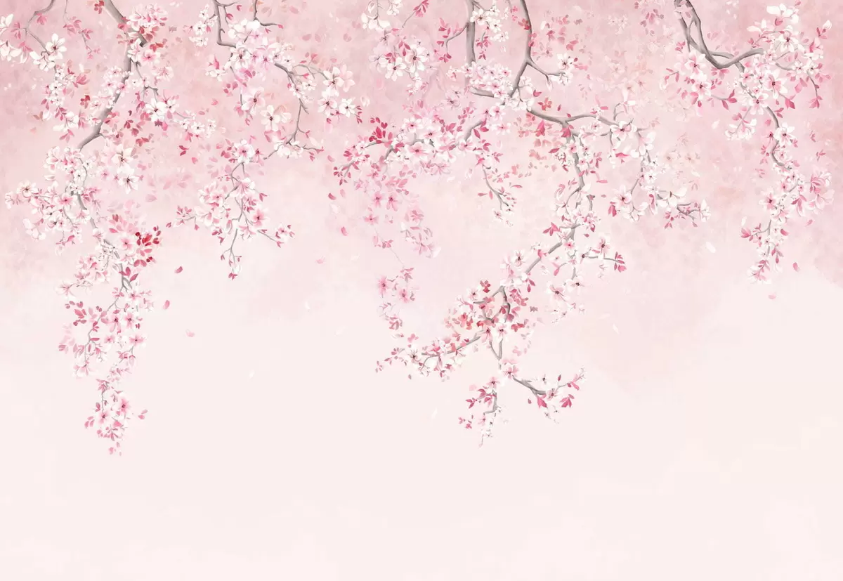 Фотошпалери Гілки з рожевими квітами на м'якому пастельному тлі w05129v1