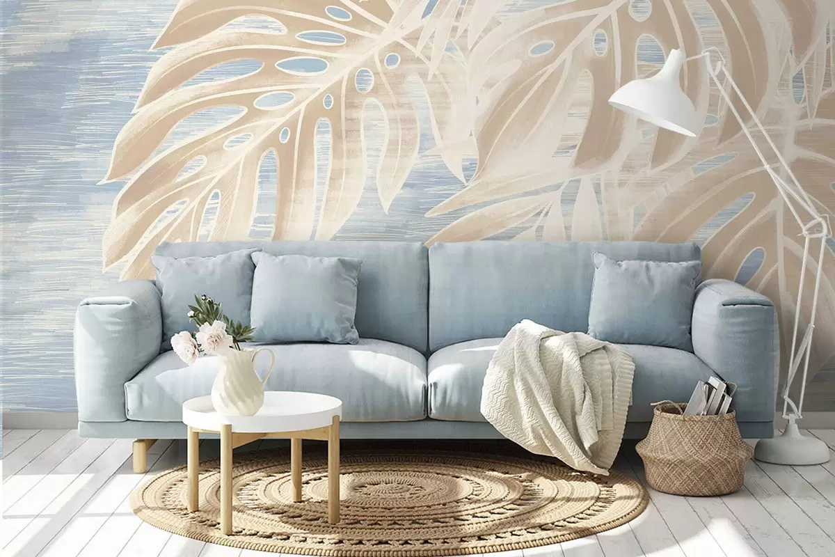 Фотошпалери Абстрактні листя в теплих бежевих тонах на світлому тлі w05130