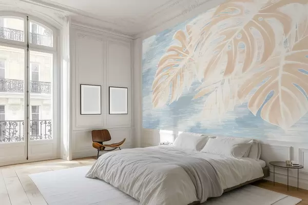 Фотошпалери Абстрактні листя в теплих бежевих тонах на світлому тлі w05130