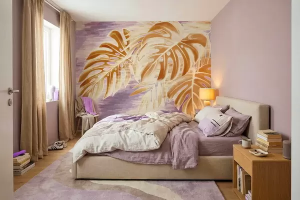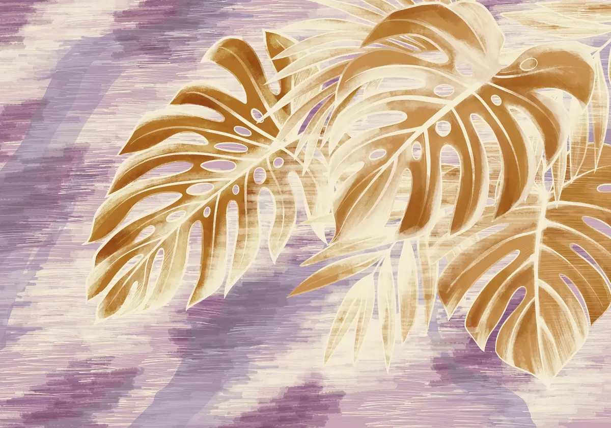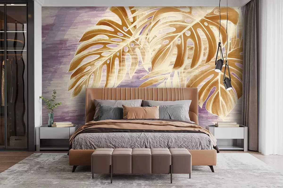 Фотошпалери Листя в теплих помаранчевих тонах на фіолетовому тлі w05130v2
