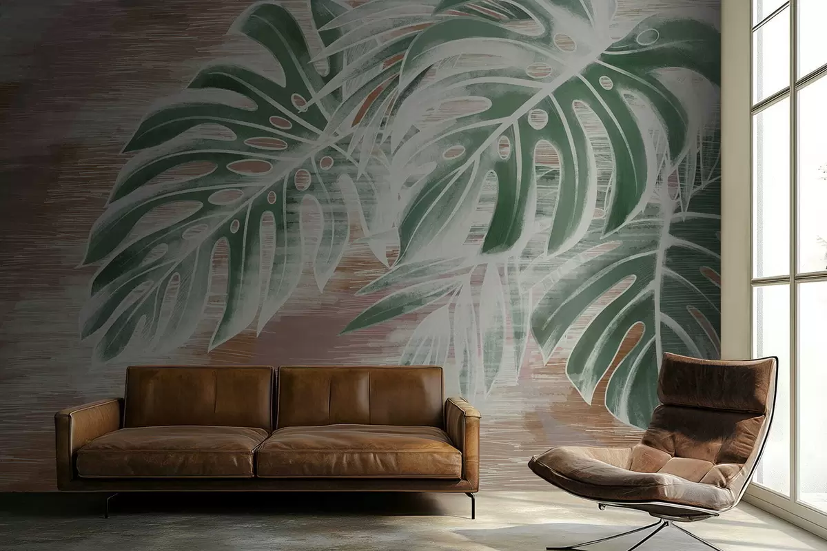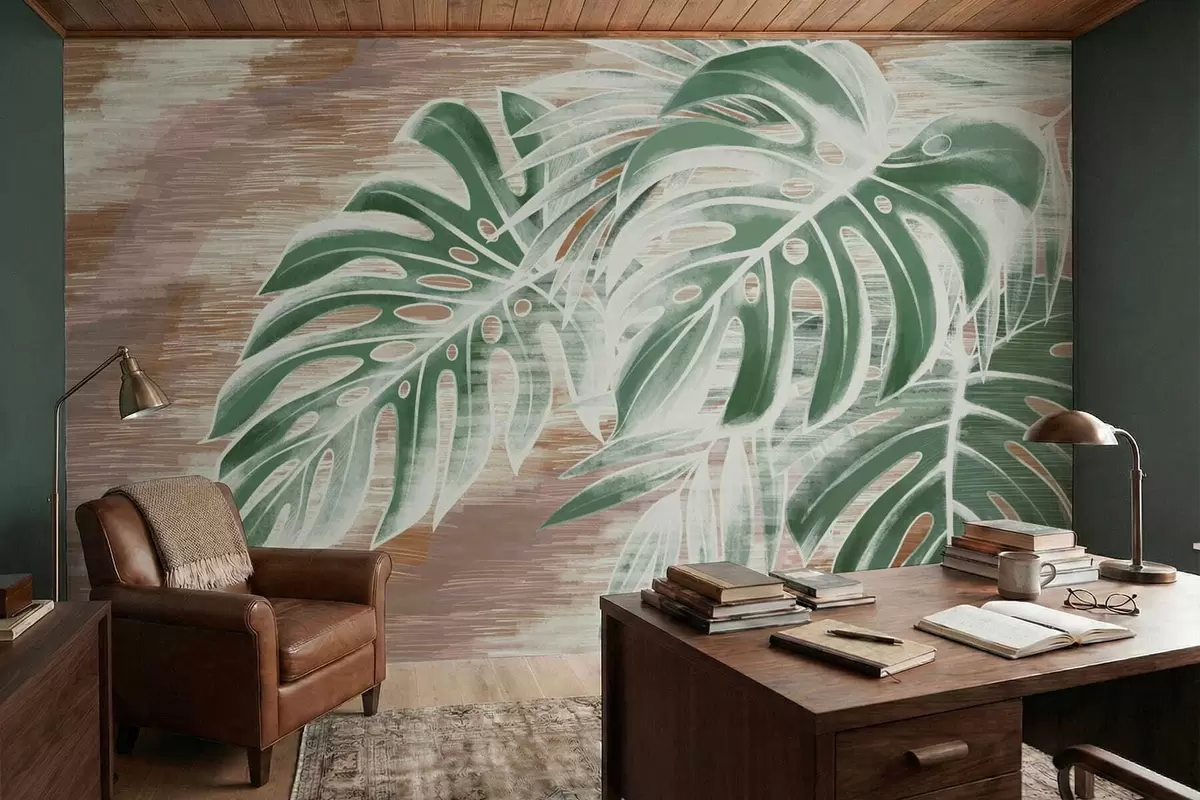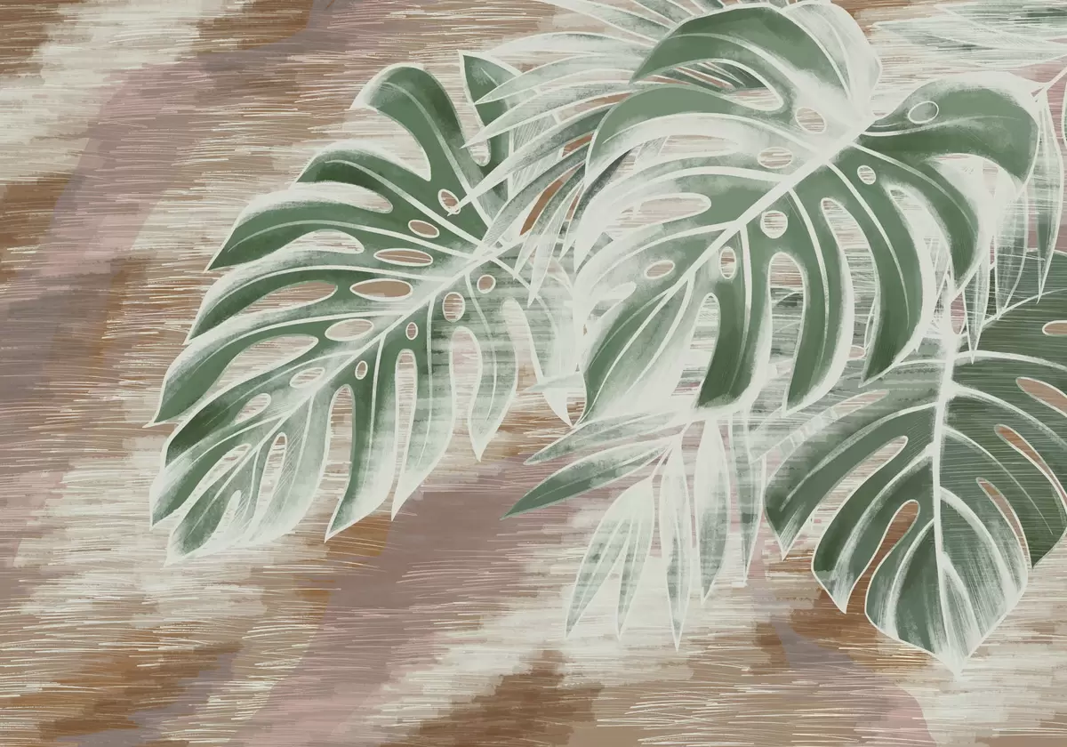 Фотошпалери Зелене листя на теплій фактурній абстрактній основі w05130v3