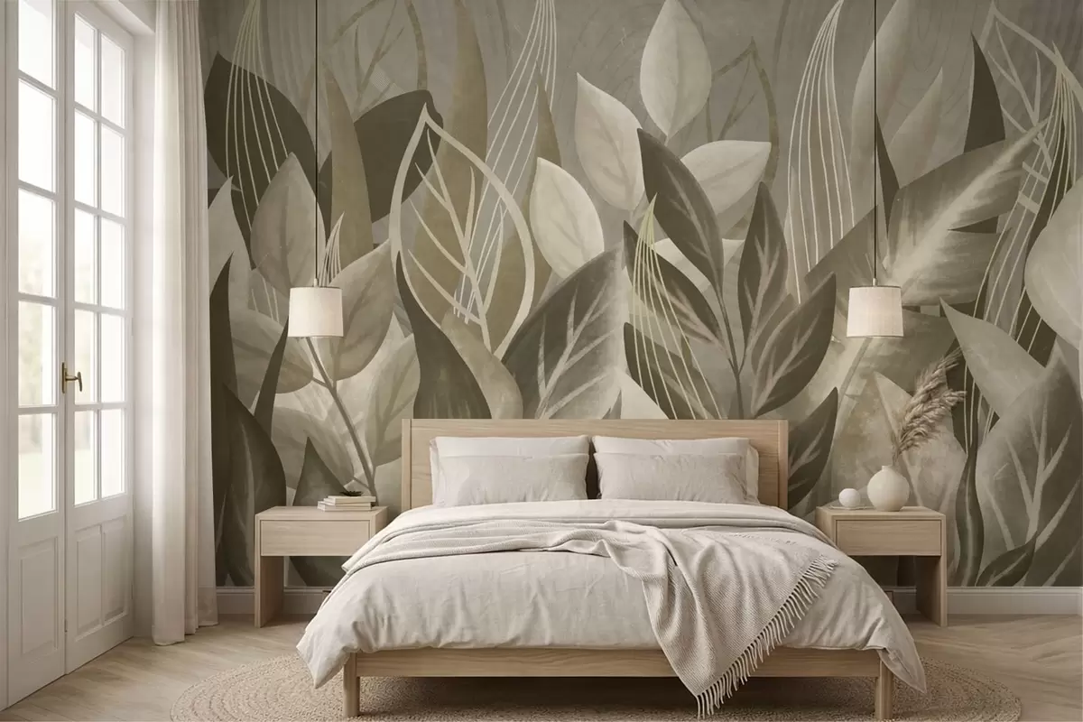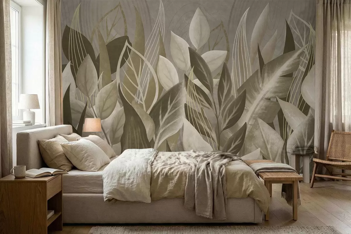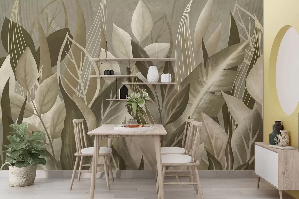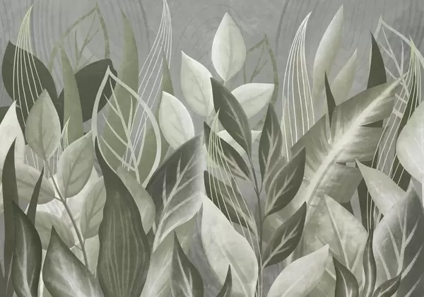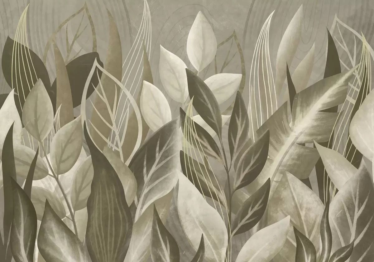 Фотошпалери Абстрактні листя у бежевих та зелених тонах w05148