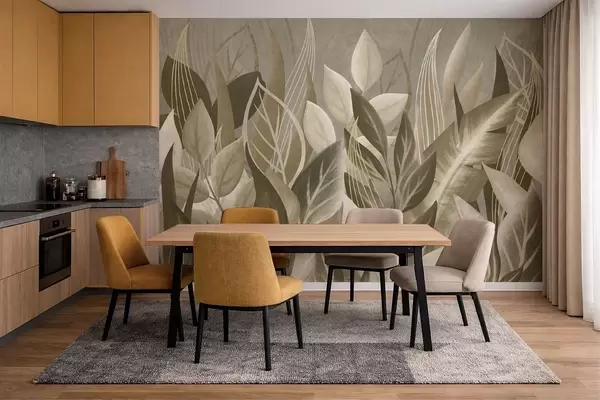 Фотошпалери Абстрактні листя у бежевих та зелених тонах w05148