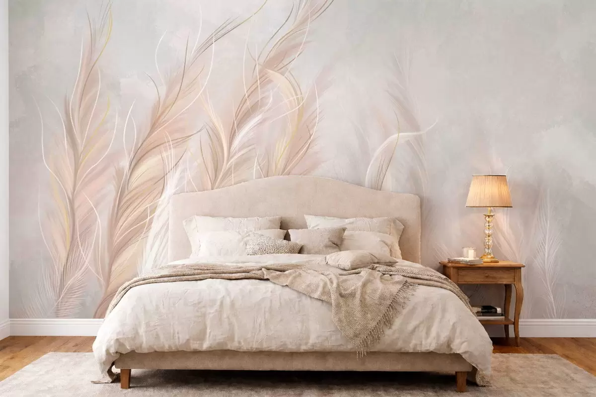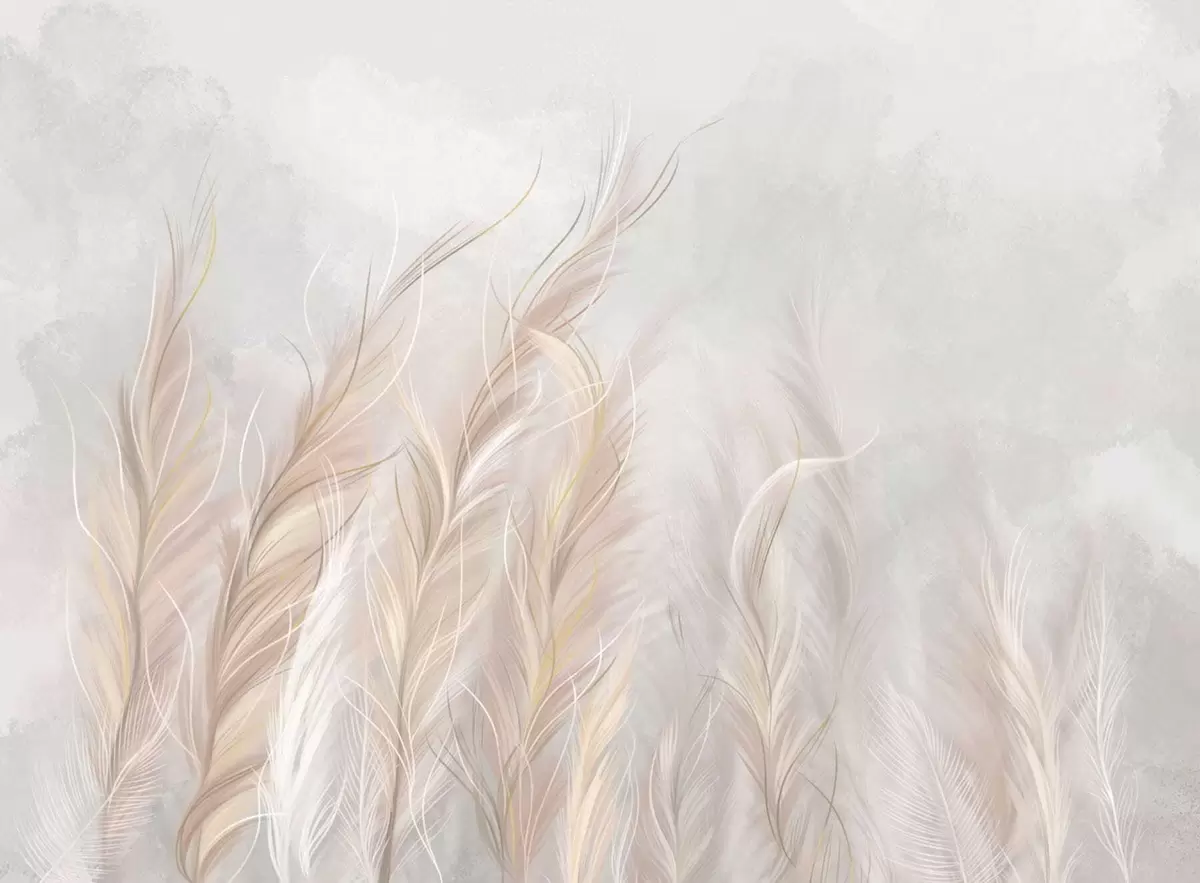Фотошпалери М'які абстрактні пір'я в світлих нейтральних тонах w05153