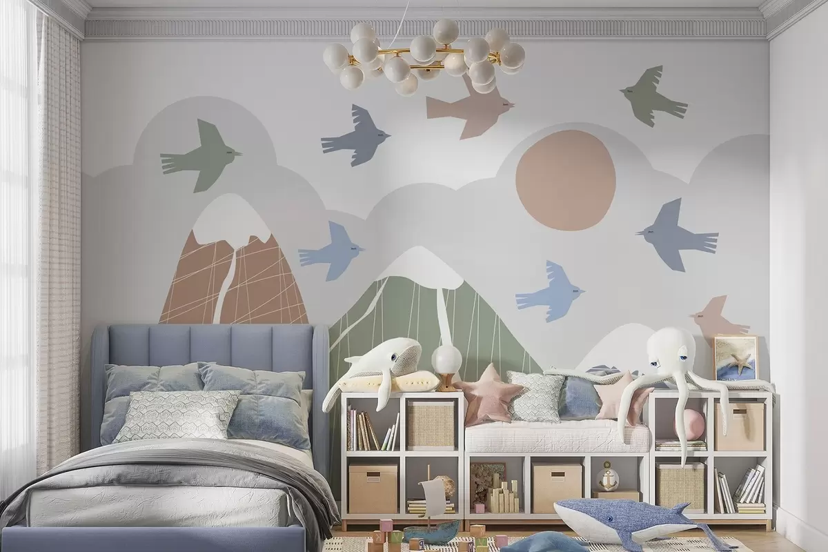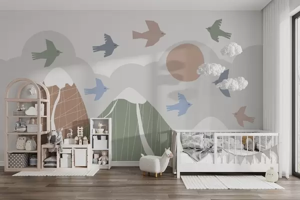 Фотошпалери Скандинавські гори та птахи w05166v1