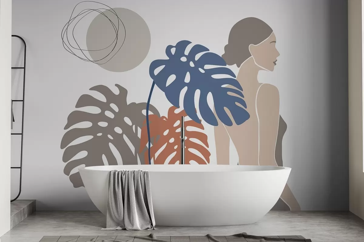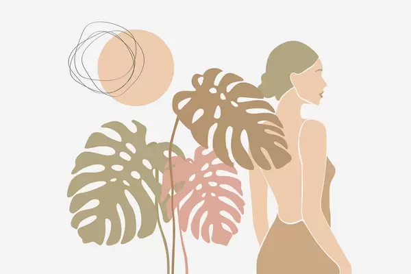 Фотошпалери Силует жінки біля тропічного листя w05192