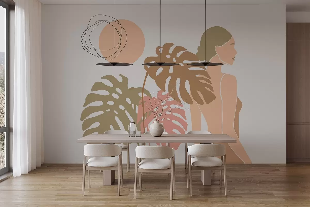 Фотошпалери Силует жінки біля тропічного листя w05192v1