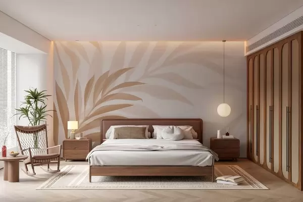 Фотошпалери великі вигнуті пальмові листя в бежевих і коричневих тонах w05211