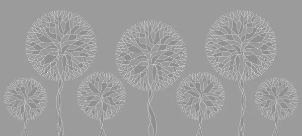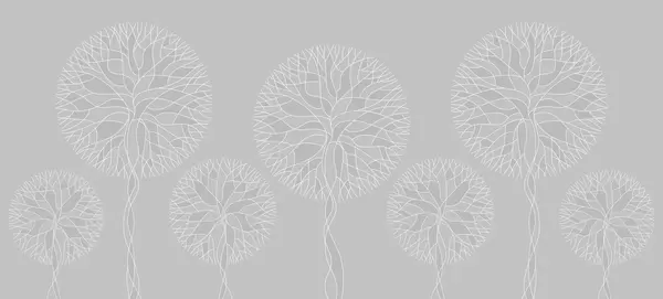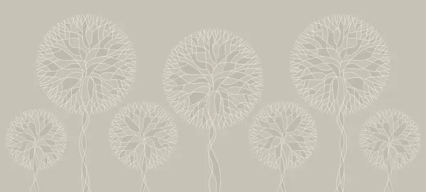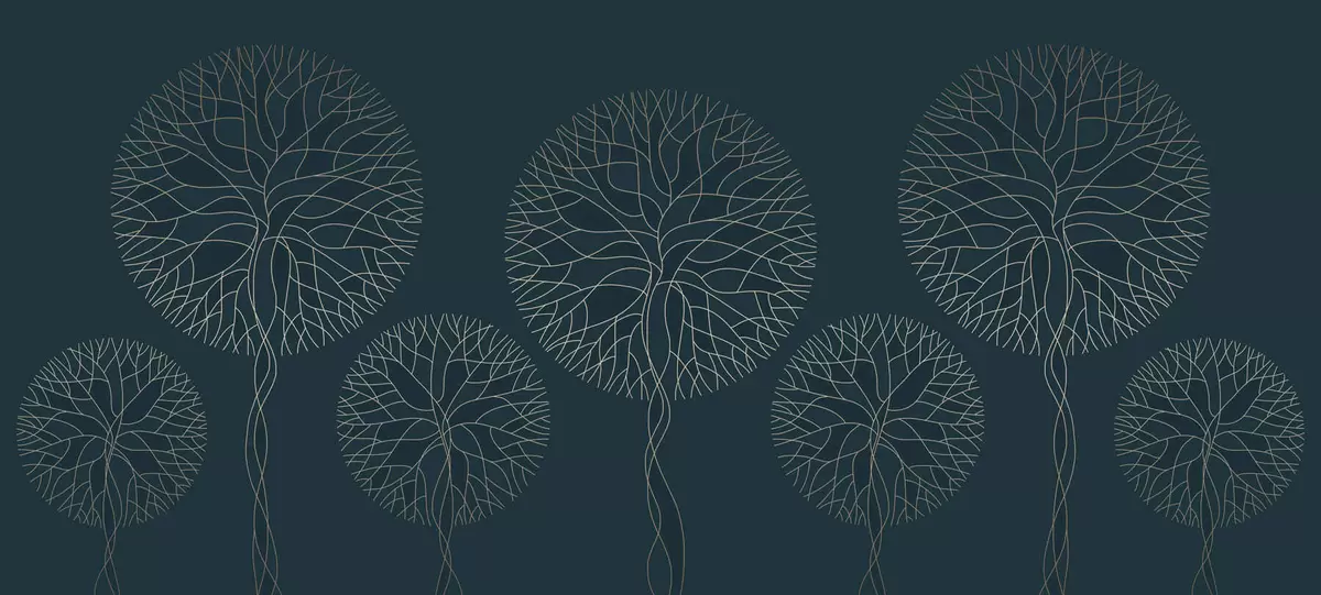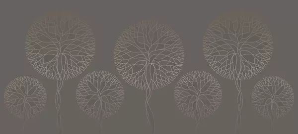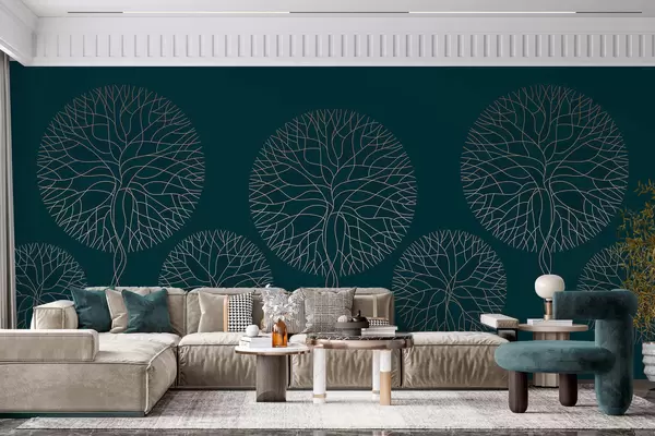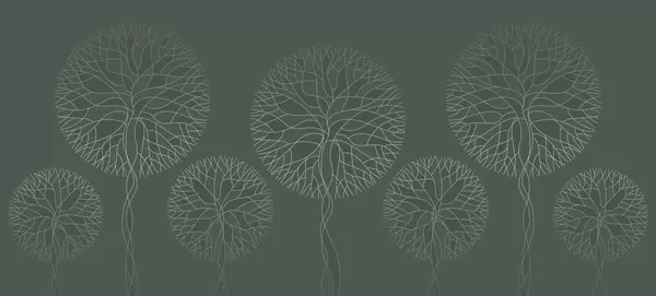 Фотошпалери Фантазійні лінійні дерева з пишними кронами в елегантних темно-смарагдових тонах w05213