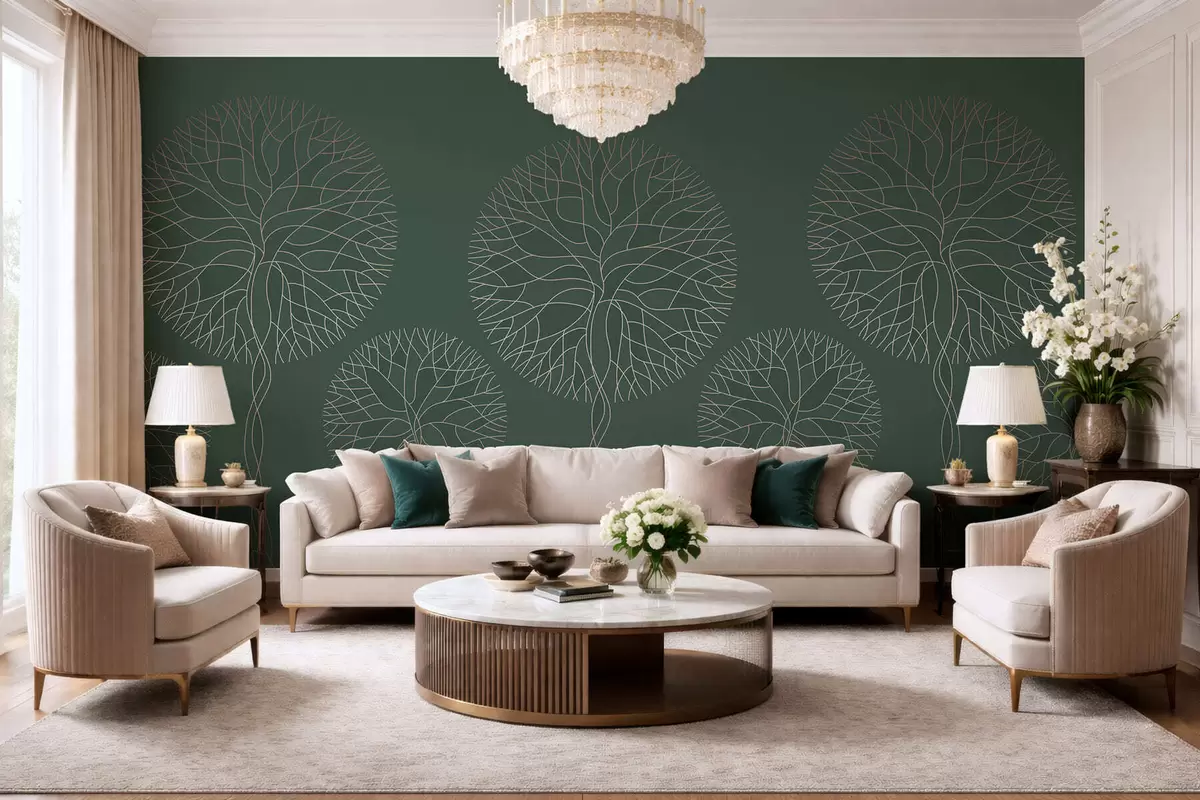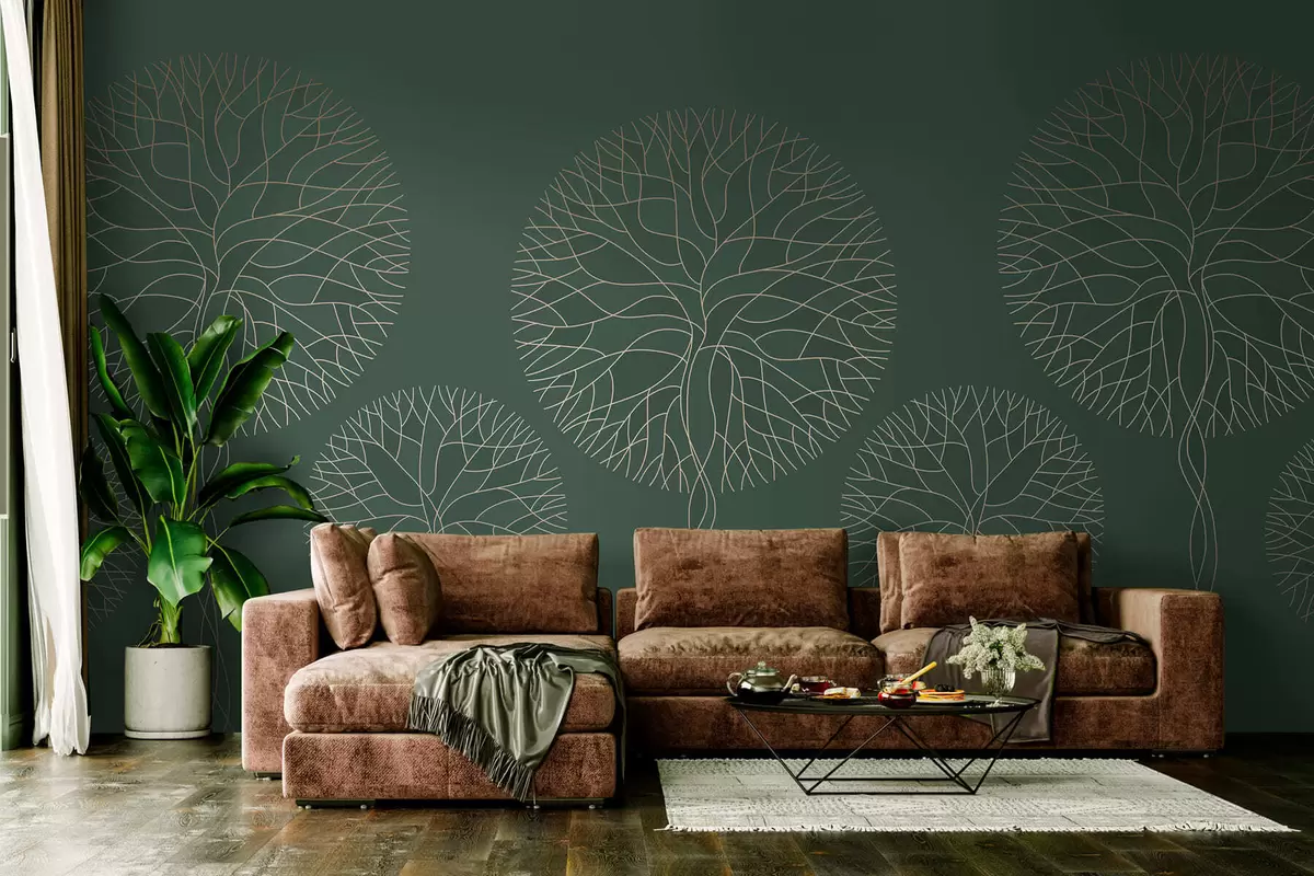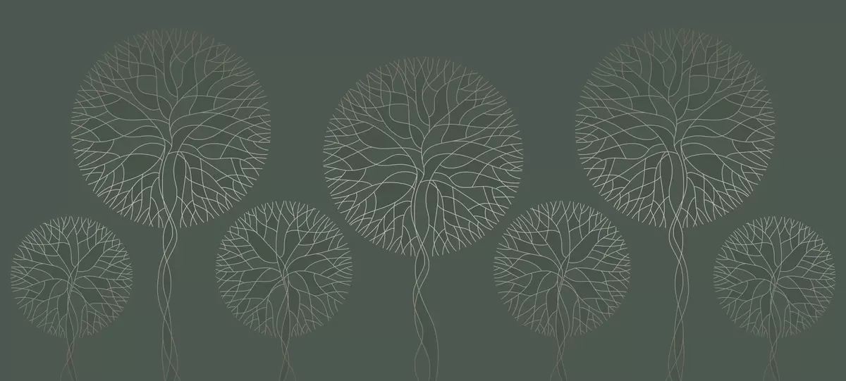 Фотошпалери Фантазійні лінійні дерева з пишними кронами в елегантних темно-зелених тонах w05213v2