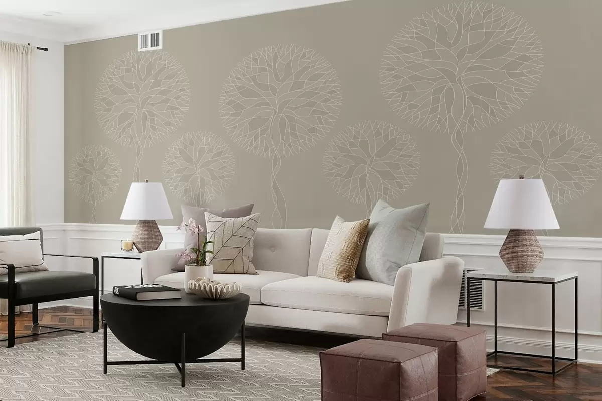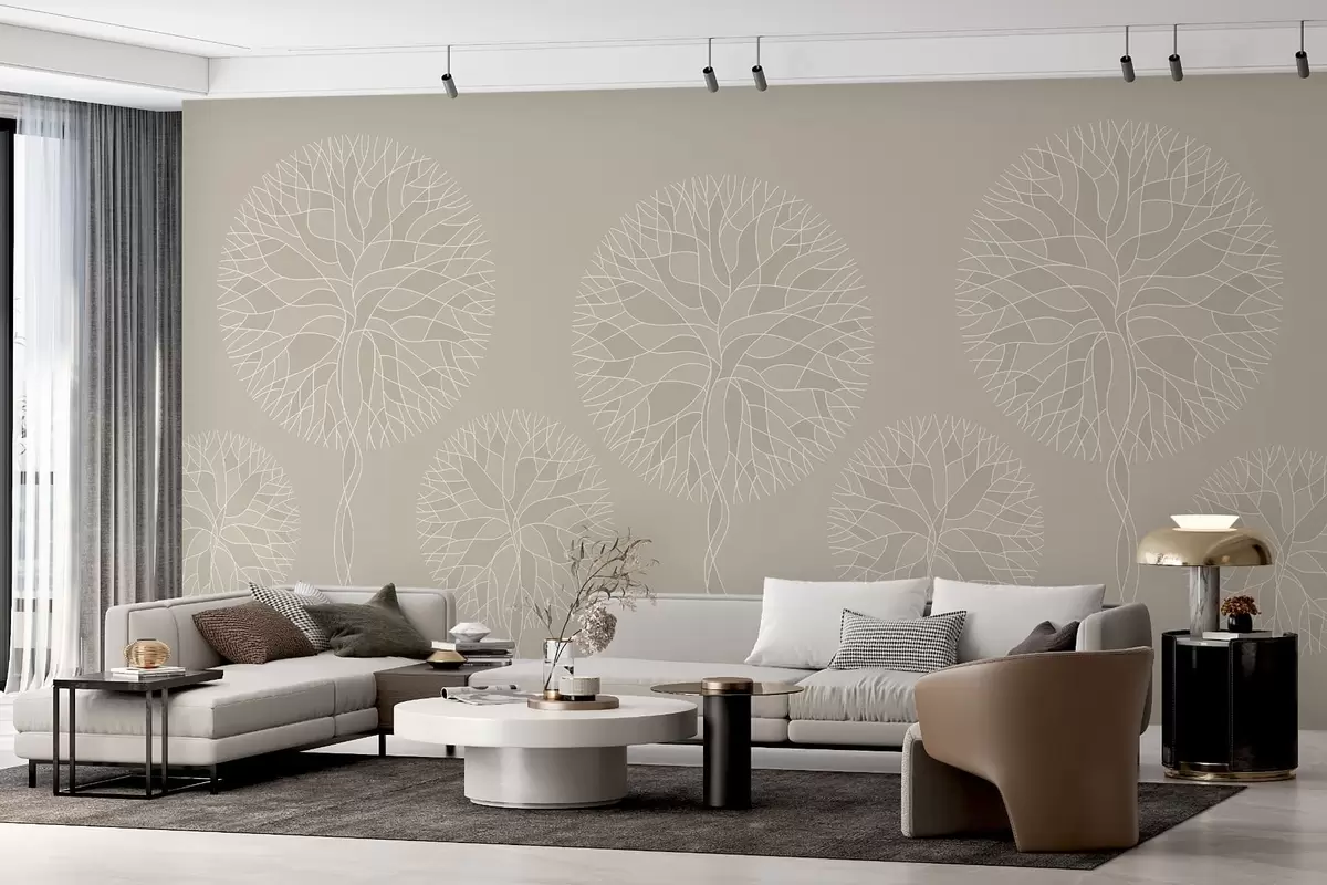 Фотошпалери Фантазійні лінійні дерева з пишними кронами в бежевих тонах w05213v3
