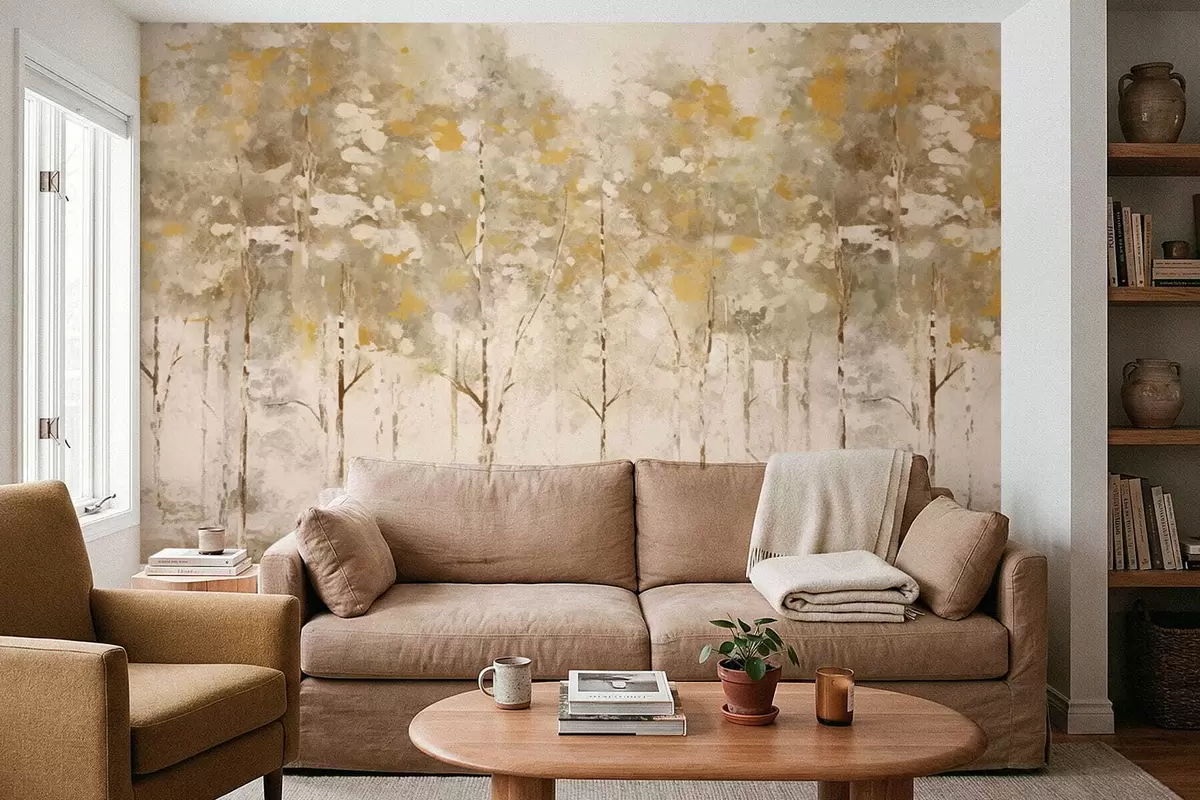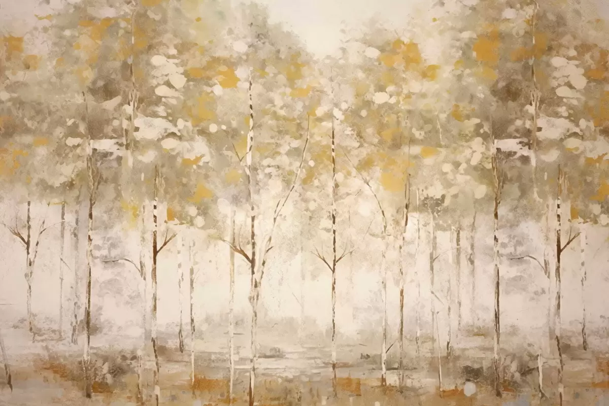 Фотошпалери Стилізований ліс із стрункими деревами в теплих тонах w05221