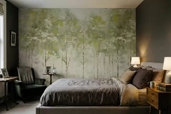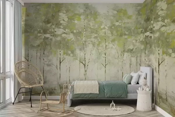 Фотошпалери Стилізований ліс із стрункими деревами в зелених тонах w05221v1