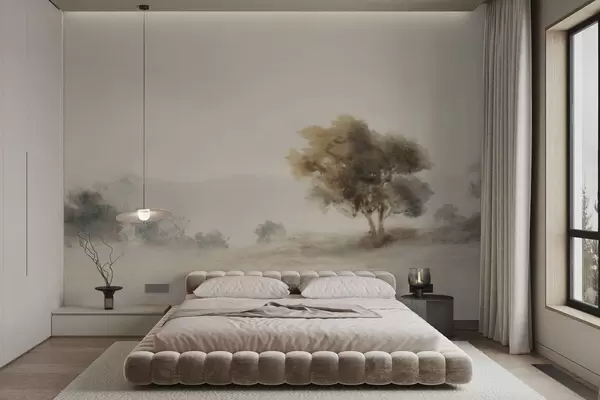 Фотошпалери Мінімалістичний пейзаж з одиноким деревом у тумані w05223