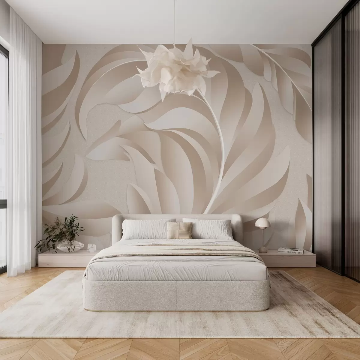 Фотошпалери великі текстуровані пір'я в бежевих і пудрових відтінках w05231