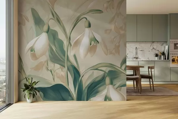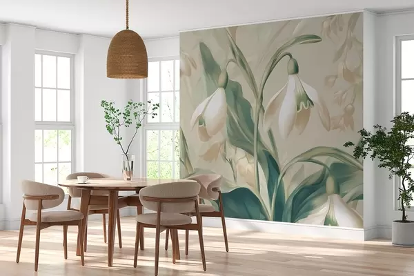 Фотошпалери квітучі проліски на бежевому тлі w05234