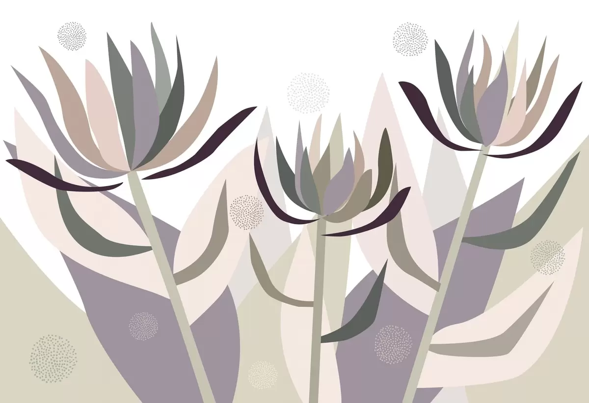 Фотошпалери стилізовані квіти протеї у примітивному стилі w05236