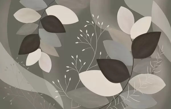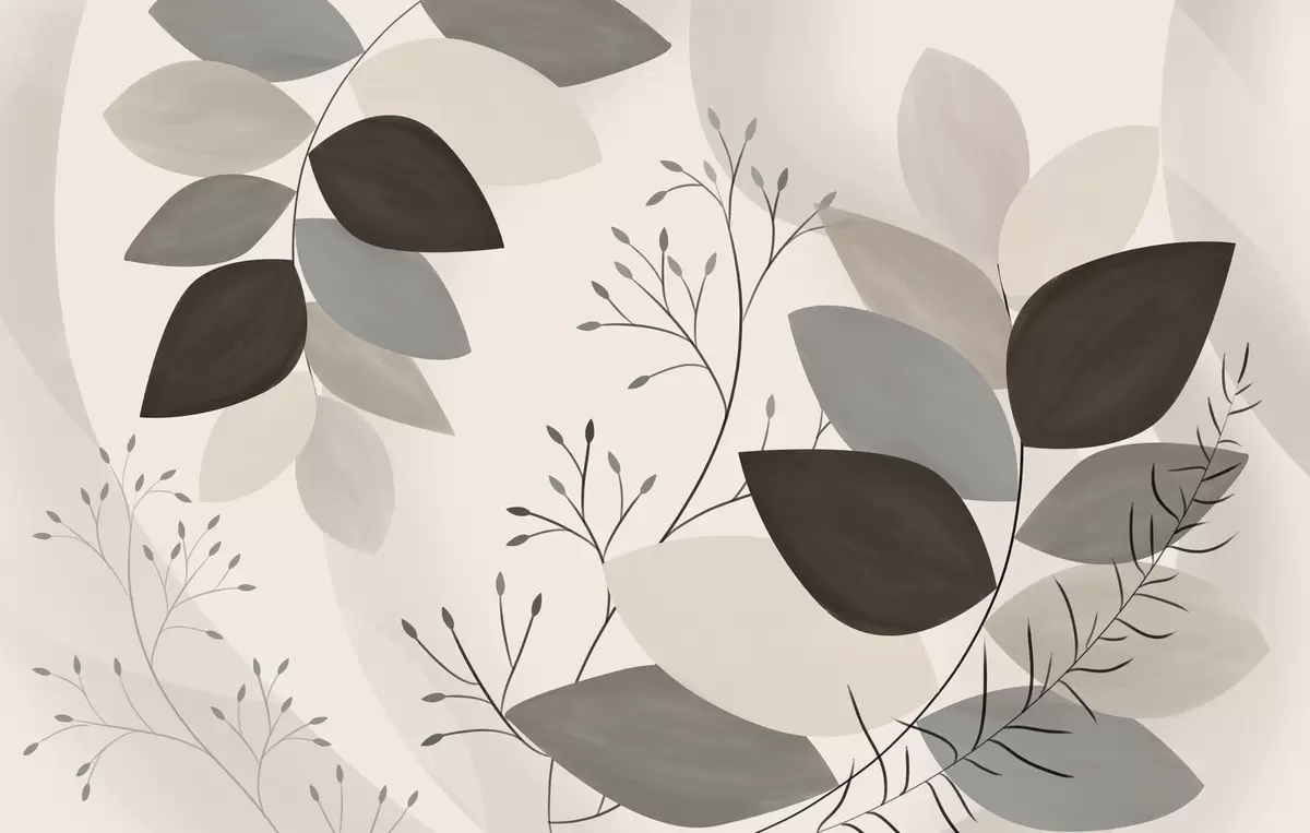 Фотошпалери листя та трава у відтінках бежевого, сірого та коричневого w05237